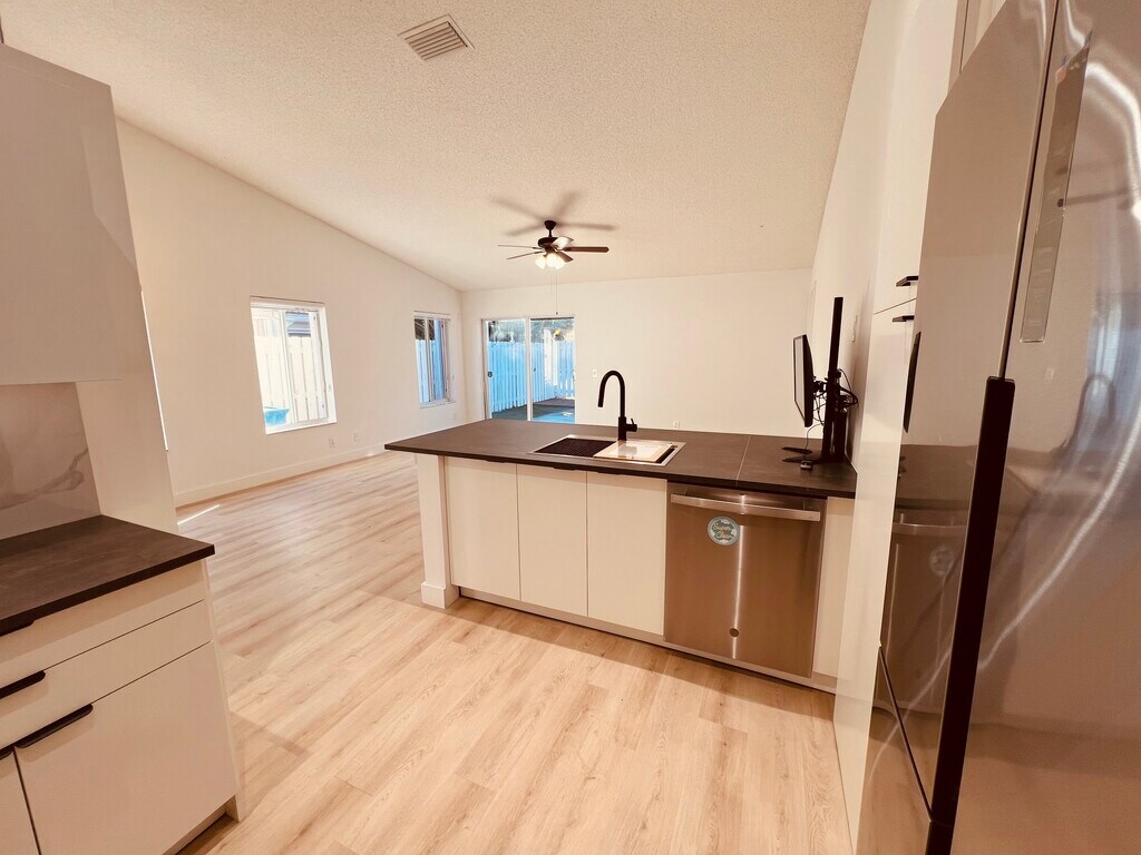 Beautifully fully renovated 3-bedroom, 2-bath single-family home in one of Weston's most desirable and safest neighborhoods. This home features brand-new floors, fresh paint throughout, and a bright, modern interior that feels clean and inviting from the moment you walk in. Enjoy an open living and dining area, a functional kitchen layout, and spacious bedrooms including a comfortable primary suite. The home is located directly across from the community pool, playground, and guest parking, making it ideal for families or anyone who enjoys convenience and outdoor amenities. The neighborhood is not gated, but has a dedicated security patrol, providing an extra level of safety and peace of mind. Fantastic location walking distance to Publix, coffee shops, gyms, top-rated schools, and local parks. Commuters will love being just minutes from the highway, making your daily travel quick and easy. This is a rare opportunity to live in a beautifully updated home in a highly sought-after Weston community. Move-in ready and available for long-term tenants who will appreciate a clean, modern, and well-maintained property. 12-month lease. First month, last month, and security deposit required at signing. Renters insurance required. No smoking or vaping inside the home. Tenant pays for electricity, water, internet, and regular AC filter changes (monthly). Owner provides major maintenance (HVAC, appliances, plumbing not caused by tenant). Tenant must follow all HOA rules; HOA approval may be required before move-in. Pets considered on a case-by-case basis with pet fee and pet rent; restricted breeds not allowed. Parking allowed only in designated areas (no commercial vehicles or trailers). Tenant needs to maintain the home in clean condition and reporting issues promptly. Tenant is required to maintain an active renters insurance policy with a minimum of $100,000 liability coverage for the duration of the lease. Owner must be listed as "Additional Interested Party." Proof of insurance must be provided before move-in and must remain active at all times.