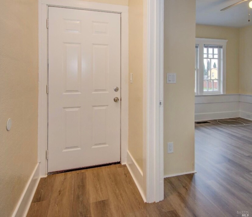 1 bedroom 1 bathroom apartment in a 2-unit building with a 2 car garage and a private backyard. Washer and dryer located in the garage. New hardwood floors and paint throughout. Renovated kitchen. Nice back porch with plenty of sunlight. Great location next to Safeway and the freeway. Pets are welcome. Available to rent starting 12/01/2025.