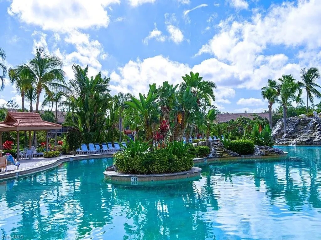Gorgeous renovated furnished, first floor 2 BR/2BA on first floor of the wonderful gated Falling Waters Development with one of Naples only resort style pools. Great light, large Master bath and closet, and 2 east west facing Lanais to watch the sunset over private feeling topical pond and beautifully landscaped island. Carport, washer dryer, tennis courts. Everything you could want for easy living. No pets. Please income qualify and have good rental references.