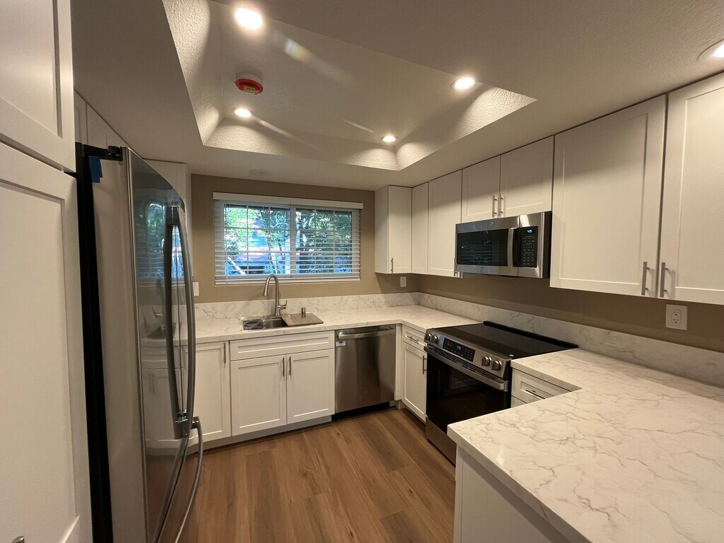 Be the first tenant to live in this completely remodeled, beautiful 3 bed/2 bath condo with pride of ownership throughout including custom soft-close cabinetry in kitchen, dining area and master bathrooms, a custom-built fireplace surround made from beautiful Italian porcelain, all new Milgard windows, window coverings and newer a/c and heating unit. Kitchen pantry has and all new stainless-steel kitchen appliances, pull out soft-close shelves, a lazy Susan and floor to ceiling cabinets with maximum storage space. New quartz counter tops, Kohler fixtures, top of line luxury vinyl plank flooring and paint all throughout the home, as well as a new in-unit stackable washer and dryer. Master bedroom offers two his/her vanities and closets. Everything has been remodeled with quality and attention to detail! This Mira La Paz home is also uniquely located with no units above you or on the sides; only one unit below so it is very quiet. And the home has an open and spacious floor plan all on one level that is bright and with lots of natural light. The oversized two-car detached garage (with additional storage) and jacuzzi are located just steps away from the unit, and the patio has a storage unit. This established, quiet community offers mature landscaping and trees. Amenities include two pools, jacuzzi, and an exercise room and it is in the top-rated Poway school district. The home is conveniently located close to the highway, shopping centers, health care, restaurants, and parks. No pets or smoking allowed.