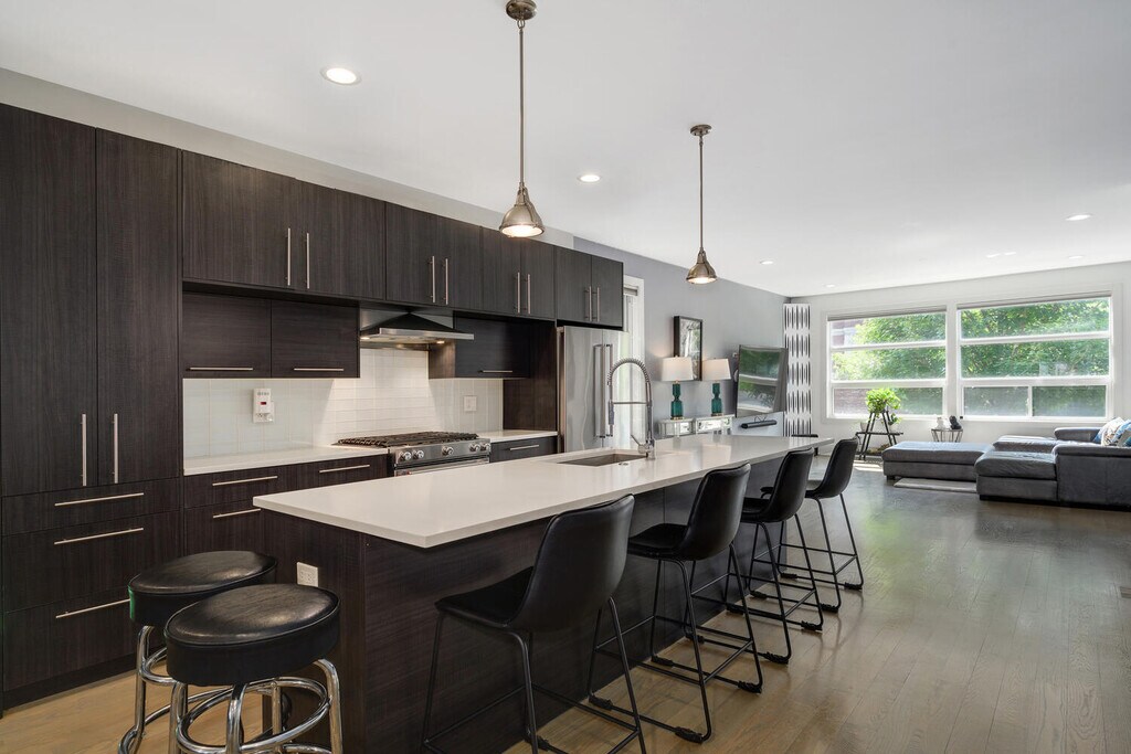 Spacious 2400 SF Duplex for Rent in Pilsen, Chicago 3 Bed, 2.5 Bath with Garage & Outdoor Oasis This newer-construction (2017) 3-bedroom, 2.5-bath duplex offers 3,000 square feet of modern indoor-outdoor living on a safe one-way street. The main level features unique and eye-catching hardwood floors throughout. A gourmet kitchen is equipped with quartz countertops and premium KitchenAid appliances, perfect for cooking and entertaining. The open-concept layout offers flexibility for a combined living and dining space or a more casual family room setup. A convenient half bath with Gucci wallpaper adds fun functionality to the first floor. One of the standout features is the massive 600-square-foot covered outdoor terrace, designed for year-round enjoyment. It includes commercial-grade roll-down shades, two wall-mounted fans, and an outdoor TV, creating a resort-like ambiance ideal for entertaining. The lower level includes three spacious bedrooms and two full baths highlighted by a private primary suite for added comfort and privacy. A bonus family or media room provides additional living space. Radiant heated flooring ensures cozy winters, while a side-by-side Samsung washer and dryer offer modern convenience. The home also features a high-efficiency tankless water heater for energy savings and consistent hot water. The rental includes one-car garage parking and several high-end electronics: a Samsung 85" TV on the main level, a 75" TV in the primary bedroom, and a 65" TV on the outdoor terrace. Outdoor patio furniture is also provided, as listed in the inventory, making the space move-in ready and perfect for relaxing or entertaining. Located in the heart of Chicago's vibrant Pilsen neighborhood and neighboring the UIC campus, this home is just a 2 minute walk to top local spots like Don Pedro Carnitas, Simone's, Senorita's, Honky Tonk BBQ, La Vaca Margarita Bar, Marisco's San Pedro, Pilsen Yards, and HaiSous to name a few. Enjoy the perfect mix of peace and proximity to dining, nightlife, and culture. This duplex lives like a single-family home and combines modern amenities, privacy, and unbeatable walkability in one of Chicago's most sought-after neighborhoods.