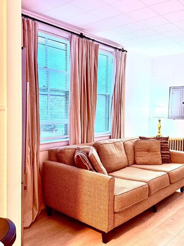 This 2-bedroom, 1-bathroom property located at 163 Broadway offers 600 square feet of living space. The unit comes fully furnished and is smoke-free, ensuring a clean and comfortable environment. The living room provides an inviting environment for relaxation and entertainment, while the bedrooms are designed for privacy and rest with blackout blinds. Included amenities are a washer and dryer for convenient laundry access. The exterior of the property is well-maintained, contributing to a pleasant living atmosphere. This property is suitable for those seeking a functional and ready-to-move-in home.