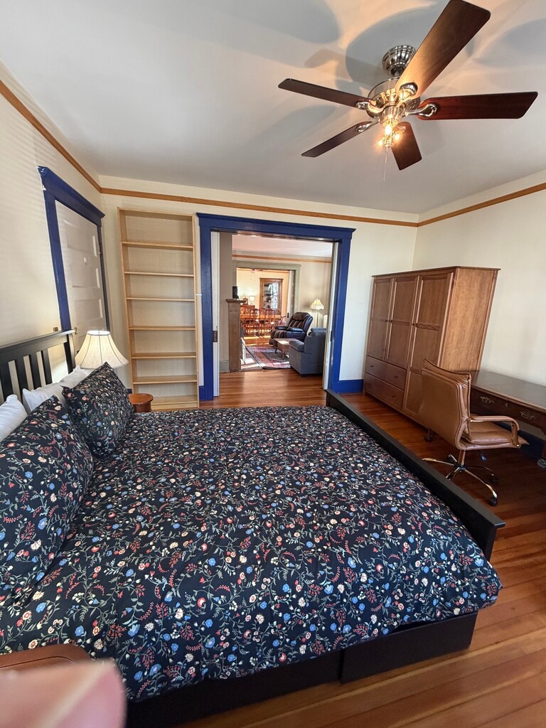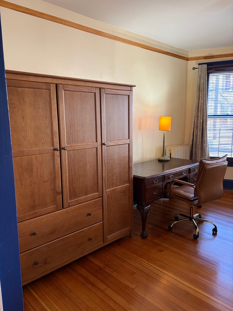 THE MOST BEAUTIFUL APARTMENT IN NEW HAVEN. Three enormous private bedrooms available within grand 1,850 square feet apartment. The best quality living like it used to be plus all contemporary conveniences. High ceilings, light-filled, oversized windows with custom drapes and blinds, custom area rugs, newly painted and newly refinished hardwood floors, granite kitchen countertops, stone kitchen and bathroom floors, working fireplace with seasoned wood available. Off-street parking. Extra storage for bicycles and boxes in secure detached garage and clean, dedicated basement space. Patio and flowering gardens with outdoor furniture and swing. Landlady is a professor who lives on premises and keeps this huge Victorian house, on the National Historic Registry, SAFE, immaculate, and beautiful all year round. Delivered packages are secure and repairs done immediately and professionally. Centrally located: 2 blocks from Yale Old Campus and Art, Architecture, Drama, Law, Music, and Graduate Schools. 4 blocks from Yale Medical School and Hospital. Yale shuttle one block away. Next to all downtown conveniences, including bookstores, coffee shops, restaurants, museums, theaters, libraries, and grocery store. Premises quiet, secure, and very well lit throughout--front, sides, and rear. New security system. Fully furnished with the highest quality furnishings, including queen sized beds and mattresses, solid wood desks, arm chairs, armoires/dressers, lights, ceiling fans, bookcases, dining room tables and chairs, sofa and love seat, leather recliner, and kitchen island and chairs. Antiques through: clocks, side tables, breakfronts, and more. Completely stocked with everything from kitchen ware, pots and pans and plate ware (including fancy china) to silverware and special appliances. All towels, bedclothes, quilts and blankets, and cleaning implements and materials included. JUST MOVE IN.