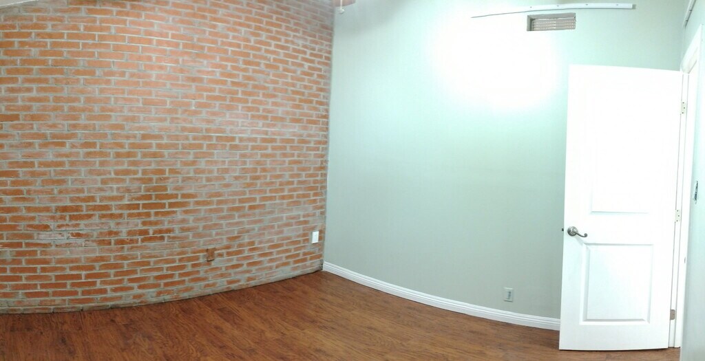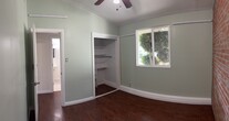 This property has a separate gated entrance from main house. Street parking. It has it's own patio and washer & dryer setup. A designated living & dining room area off the kitchen with a beautiful brick wall. A/C and electric wall heater. Spacious pantry cupboards. Fridge & gas stove set up in kitchen. Custom hallway broom closet. Full bathroom with shower & custom shelving. Private bedroom with custom closet shelving and storage.