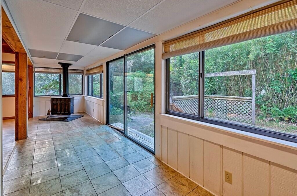 This huge house features 6 bedrooms, 4 bathrooms, a large kitchen, multiple living rooms, a library/office, wooden floors throughout, and spacious fenced in yard. There are 2 primary bedrooms with their own newly renovated bathroom, and 4 other bedrooms that share 2 bathrooms. The large kitchen has lots of cabinet space, all appliances, and its own skylight. One living room has a skylight and built in shelves, and the other opens to the outside patio area. The front porch is great for hanging out after a long day and the library features a retro wallpaper, built in shelves, and lots of natural light. Located just a few blocks behind midtown and a short walk to UF, Publix, and the Standard, this house has so much more living space than any high rise apartment and for a cheaper price per room. The house connects to AT&T fiber or Fiber IQ. Lawn care is included in the rent.