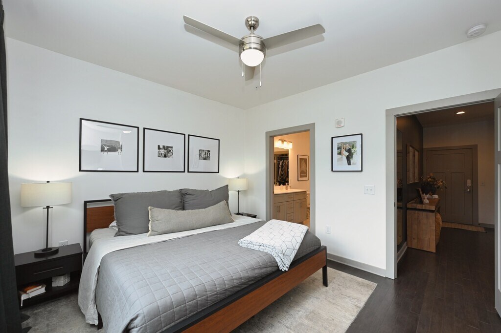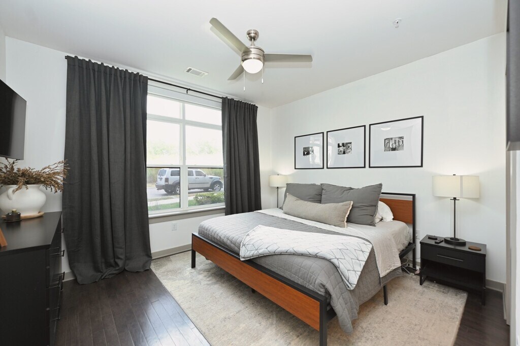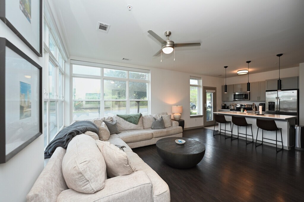 Ready for a renter: this corner unit on the first floor is incredibly accessible—no stairs—and offers ample parking. This condo features an open-concept design with 2 bedrooms, each with an attached bathroom and closet. The living room windows are wired with motorized shades. The secure building offers Amazon delivery lockers, gym, pool, grilling stations and cabana. Located in the Nations’ walkable community, you’ll enjoy lots of dining options, coffee venues, parks, and shopping, with downtown Nashville, the airport, and major interstates all within minutes.