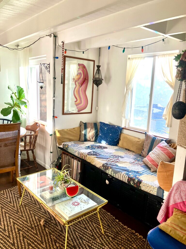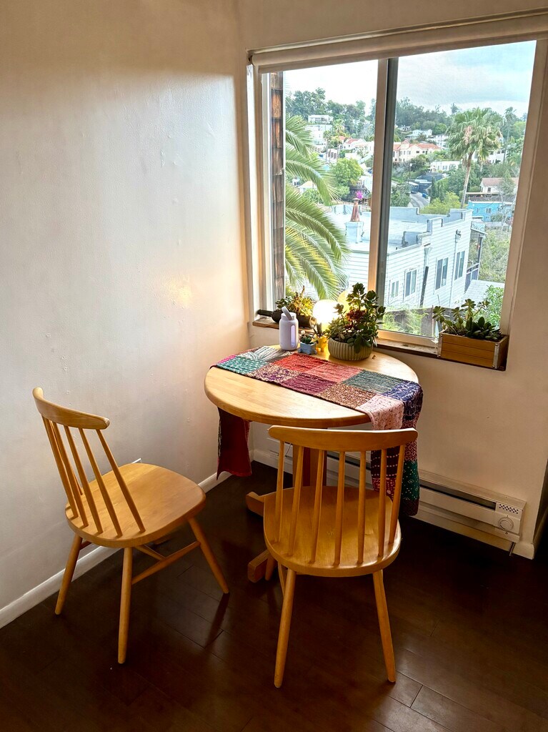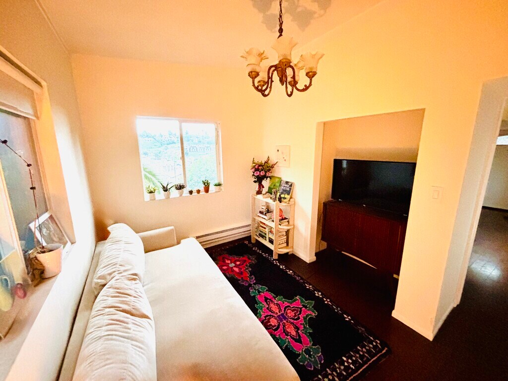 Rear unit available in historic hunting lodge in the hills above Downtown LA! This smoke-free property offers a versatile and updated living space with 2 bedrooms and 1 bathroom. The front and back terraced gardens featured mature fruit trees and beautiful views of the Echo Park hills. Wonderful neighbors on a quiet street, walking distance to many dining and shopping establishments. City views for days (and nights!): Charming, naturally well lit, 2 bedrooms, 1 bath apartment available in artistic and vibrant Echo Park. 3 ½ blocks north of Sunset Blvd, this unit is part of an original hunting lodge built on one of the most desirable hills in the area. The building dates to 1910! Just a short 10 minute walk downhill to Sunset Blvd and you’ll find Lassens Natural Food Market, the weekly farmer’s market, and countless restaurants, cafés, watering holes, boutiques, live music, and nightlife. Another couple of blocks south of Sunset gets you to Echo Park Lake where the Lotus Festival is held each summer and swan boats are available to rent! Enjoy the beautiful views from the large living room windows of this unit overlooking the hills and sometimes even the fireworks from Dodger Stadium! The shared backyard has a dining table and chairs and several mature trees - grapefruit (over 100 years old - an Oro Blanco variety), orange, Meyer lemon, and avocado. The property is peaceful and quiet with great neighbors. This unit was renovated – there is a fresh coat of paint, a light-filled bathroom, a well sized kitchen with stainless appliances, newer 12x12 ceramic tile floor, granite countertops, plenty of storage cabinets, dark bamboo floors throughout, and newer windows. This unit was updated by owner for their own retreat and is now available for new folks to enjoy this super special space. This is a true hillside retreat, away from the hustle and bustle of the city, while still conveniently located.