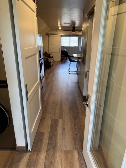 Month-to-month lease. We are located in a cul-de-sac in a very safe subdivision on a 1.5-acre lot, 10 miles north of Rapid City. Elk Creek is in our backyard. It offers fantastic views and is ideal for those looking for a quiet walk or run. There is only one apartment plus our personal residence on the property. We do have dogs on the property, but they will be in a fenced area when outside. They are all very friendly. We are on a community well and septic system. We have installed a whole-house water filtration system and a refrigerator system for high-quality water. We also have a whole-house water softener system. The tenant will have full control over the apartment's temperature. Small dogs are accepted on a case-by-case basis.