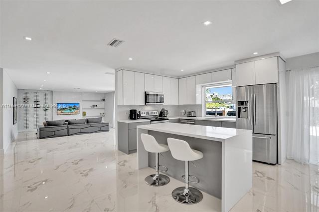 This beautifully renovated 3-bedroom waterfront home is nestled in the exclusive Eastern Shores neighborhood, offering a perfect blend of luxury and convenience. The property features a heated pool, private dock, and a spacious 2-car garage. With modern upgrades throughout, this home provides an open floor plan ideal for both relaxation and entertaining. Located just 10 minutes from the beach and within walking distance to shops and restaurants, this prime location offers the best of Miami living. Whether enjoying the serene water views or taking advantage of the nearby amenities, this property truly has it all. 16433 NE 33rd Ave NORTH MIAMI BEACH, FL 33160-4109 ML#: A11833887