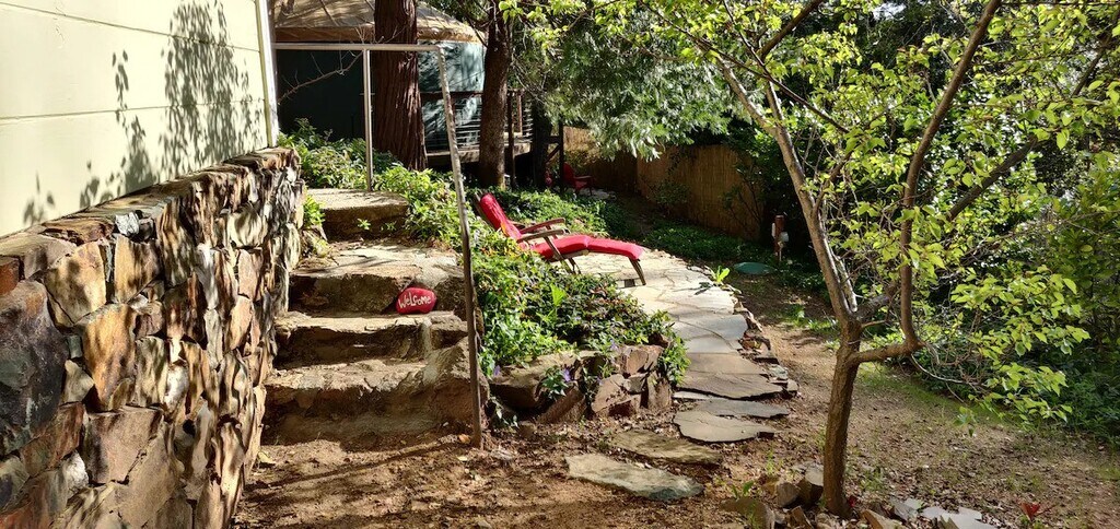 Welcome to the fully furnished Hideaway! A minimum stay of one month is required, and longer stays are welcomed. This is a non-smoking, non-vaping child and animal-free home. Note: the Hideaway is for single occupancy only. Located within walking distance of coffee shops, restaurants, quaint shops, and a Saturday farmer's market in downtown Auburn. The Hideaway is also a few blocks from the most beautiful hiking and biking trails in the American River Canyon. It's the perfect home base for your foothill adventures. The Hideaway is a beautiful space, with a charming entrance facing a park-like backyard, surrounded by oaks, cedars, and numerous terraced seating areas. It has a comfortable queen bed that awaits you for rest and restoration as well as plenty of space to relax on the L-shaped sofa. It also has plenty of closet space. For entertainment, there is a 50 inch TV controlled with a Roku remote for access to streaming services. Note: we provide access to Netflix, and you will have access to your subscriptions to other streaming services. The kitchen is tastefully decorated with granite countertops, dishwasher, refrigerator, microwave, and induction cooktop. There is a laundry room with washer/dryer, and an office space for you to catch up on work, The unit is move-in ready, with linens, dishes, pots and pans, soaps and shampoos, and cleaning supplies. For stays over a month, we provide a monthly cleaning, free of charge. The backyard is a beautiful outdoor area with gardens, hanging lights, fire pit, space heater and fountain! You will have your own parking space and entrance. The Hideaway is your private oasis, completely separate with its own entrance. The Canyon Retreat is upstairs and footsteps may be heard. Quiet hours are from 10 pm to 7 am to ensure everyone gets the rest that they need. Thank you for your consideration.