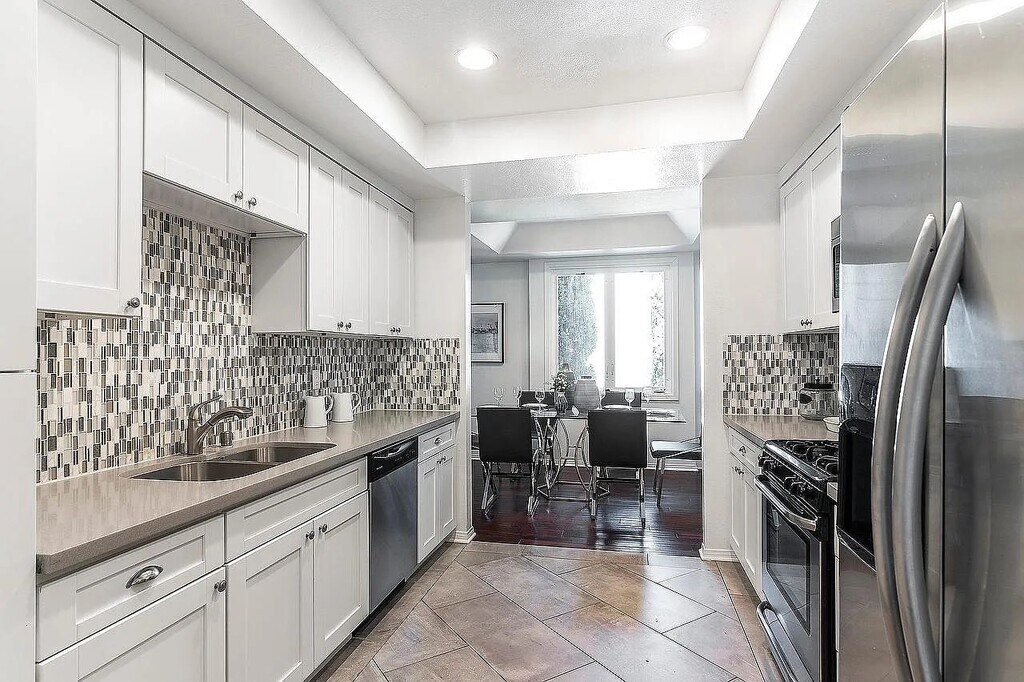 This stunning front-facing, corner unit offers 1,500 SF of thoughtfully designed living space in one of Westwood's most sought-after neighborhoods. Featuring 2 spacious bedrooms and 2 full baths, this remodeled home is filled with natural light and modern upgrades throughout. Enjoy a bright and airy living room with an office nook, perfect for working from home, and a sun-drenched balcony with serene treetop views. The large dining area flows seamlessly into a remodeled kitchen with custom cabinetry and stainless-steel appliances, making it ideal for both everyday living and entertaining. The bedrooms are well separated for privacy, with generous closet space throughout, including a walk-in closet in the primary suite. Additional features include in-unit washer/dryer, two side-by-side secured parking spaces, a private custom storage room, and controlled building access. All of this just minutes from Westwood Village, UCLA, Sawtelle, Century City Mall, and some of LA's best dining, shopping, and entertainment. Convenient access to the 10 and 405 freeways makes commuting a breeze.
