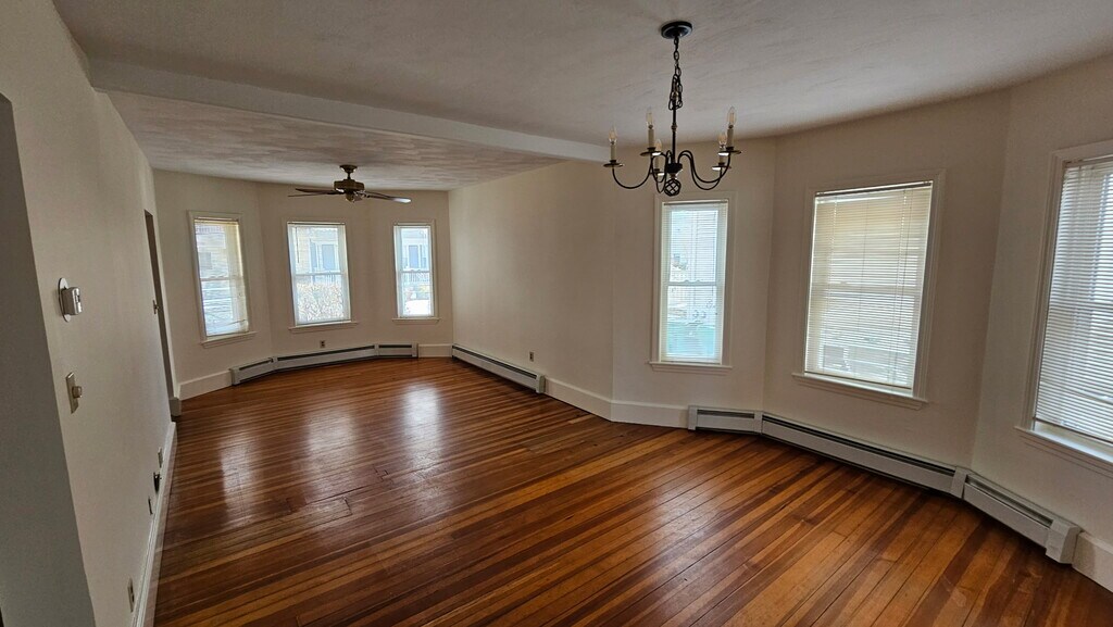 1st floor apartment in a well maintained 3 family house. Large shared outdoor space On street parking Near bus routes / Orange and Green lines Bonus usable / storage space in basement No smoking