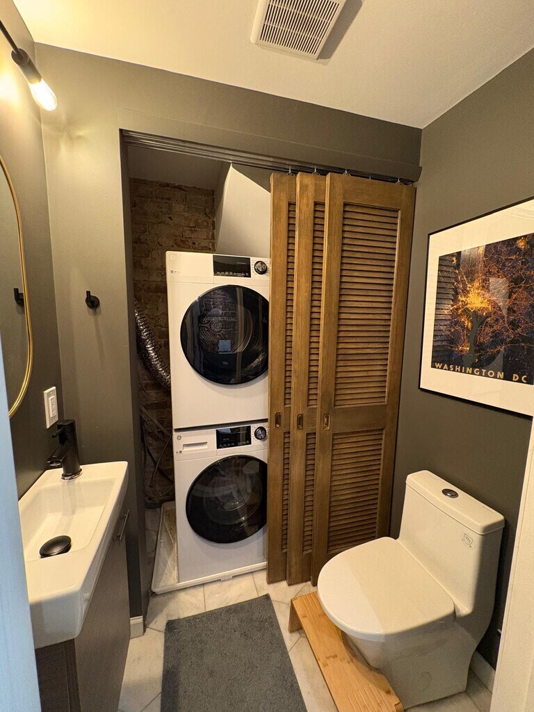 Classic Adams Morgan Townhouse with Modern Charm & Private Patio – Steps from Meridian Hill Park Welcome to 1674 Kalorama Rd NW, a beautifully updated 2-bedroom, 1.5-bath townhouse that combines classic DC architecture with bright, modern design. Nestled on a quiet, tree-lined street just off Meridian Hill Park, this home offers a peaceful retreat in the heart of Adams Morgan. The open, airy main level features high ceilings, gleaming hardwood floors, and an exposed brick accent wall that adds timeless character. A fully renovated kitchen showcases quartz countertops, stainless-steel appliances, and modern cabinetry, opening directly onto a private back patio—perfect for morning coffee, summer dinners, or quiet evening relaxation. Upstairs, the spacious primary bedroom includes a sunlit alcove ideal for a home office or reading nook, while the second bedroom provides flexibility for guests, children, or creative use. The renovated full bath blends elegant tilework with modern fixtures, and the convenient half bath on the main level enhances everyday comfort. Additional features include in-unit laundry, central air, and free parking across the street at Harris Teeter via an annual lottery. Located across from the supermarket and within the Marie Reed Dual-Language School boundary, this home offers urban convenience with a calm, park-side atmosphere. Enjoy the gardens and fountains of Meridian Hill Park, or walk to Adams Morgan’s cafés, boutiques, and restaurants. Easy access to multiple Metrobus routes and both the Woodley Park/Adams Morgan and Columbia Heights Metro stations makes commuting effortless. A rare opportunity to enjoy modern living, historic charm, and a tranquil park-side setting—right in the center of the city.