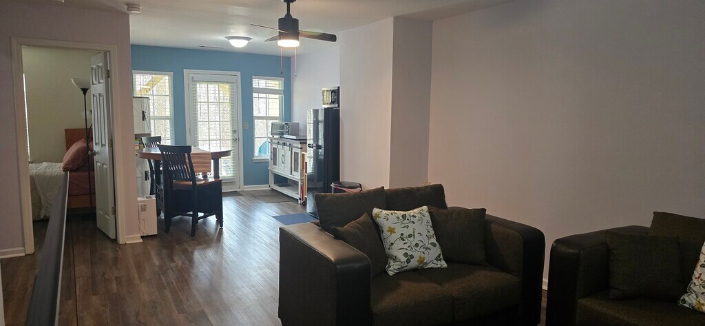 Private Studio Efficiency in a quiet neighborhood available. Utilities and Wi-Fi are included, making this a hassle-free living option. This comfortable studio efficiency offers a private and peaceful living space that includes one bedroom, one bathroom, and a combined living and dining area. The unit also features a convenient kitchenette and a small porch overlooking a wooded area, providing a relaxing spot to unwind after a long day. The entrance to the home is shared, but the studio itself is a completely private space, offering both comfort and privacy. A washer and dryer are available on the property for added convenience. Parking is available in the area, and when I am traveling, driveway parking may also be available. The unit is a part of a townhouse located in a quiet and safe neighborhood, this space is ideal for traveling professionals, nurses, or anyone seeking a peaceful and comfortable short-term rental.