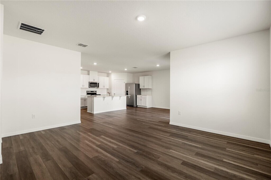 This floor plan offers 4 bedrooms, 2 bathrooms, a 2-car garage with 1,882 sq ft of living space. The open layout connects the living room, dining area, and kitchen, ideal for entertaining. The kitchen boasts quartz countertops, stainless-steel appliances, a walk-in pantry, and a spacious island. The four spacious bedrooms allow flexibility for various lifestyles. The primary suite located in the rear of the home features a private ensuite bathroom with dual sinks, a separate shower, and a walk-in closet. The remaining three bedrooms share one well-appointed bathroom, making morning routines a breeze. The laundry room is convenient to all bedrooms. This all-concrete-block construction home also includes smart home technology for control via smart devices. Lawn care included.