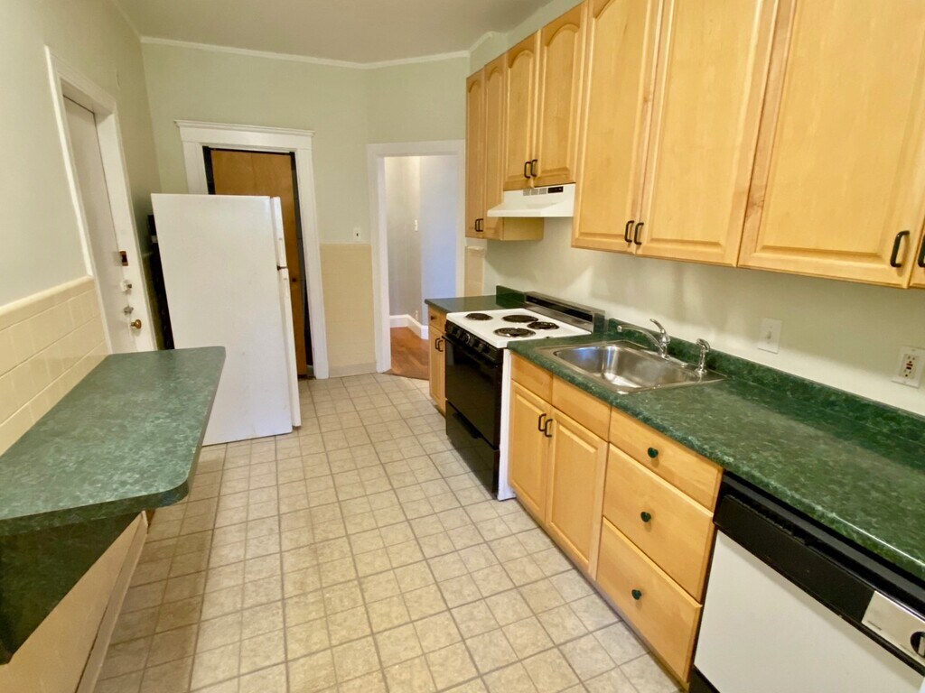 This sunny and large top-floor apartment features large rooms, high ceilings, hardwood floors, and one parking space. Located just off Beacon St. in the Washington Square neighborhood of Brookline, it's just a short walk to the T, supermarket, restaurants and shops.