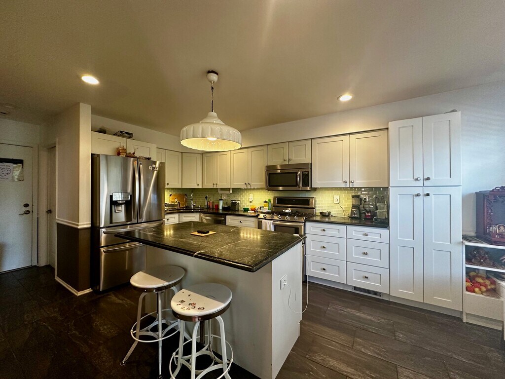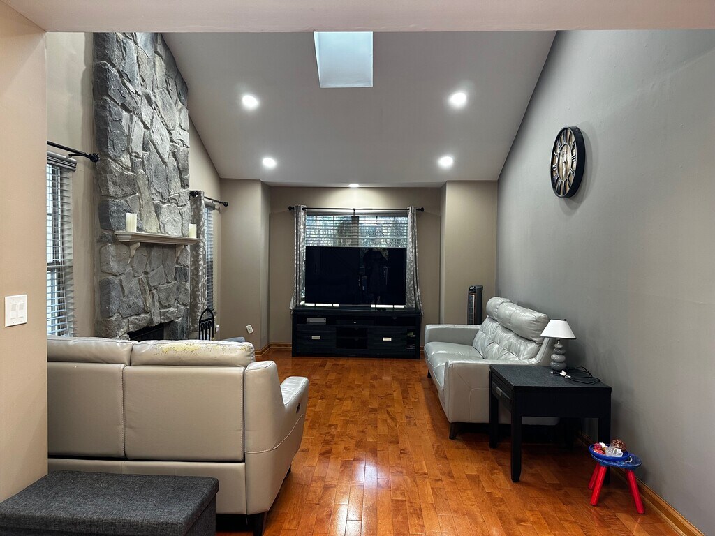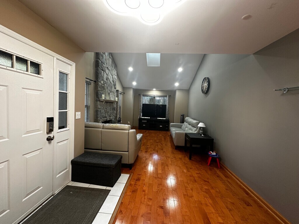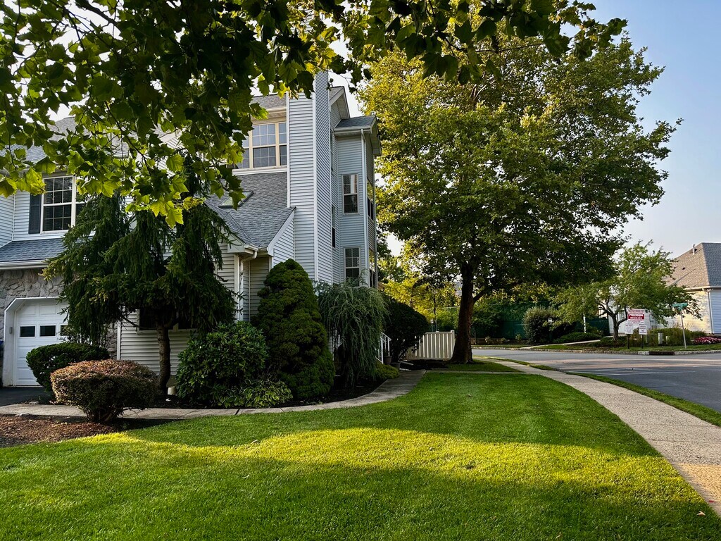 Stunning end-unit townhome nestled in the highly sought-after Renaissance neighborhood, offering 3 spacious bedrooms, 2.5 baths, an attached garage, and a fully finished basement. Thoughtfully updated by the owner in recent years, this inviting home opens to a welcoming foyer leading into a bright and airy living area enhanced by recessed lighting, natural skylights, a charming stone-surround fireplace, and gleaming hardwood floors. The separate dining room exudes elegance with detailed molding, recessed lighting, and hardwood flooring—ideal for entertaining family and friends. The beautifully remodeled kitchen features a center island, stylish backsplash, abundant cabinetry including extra storage near the windows, granite countertops, and durable ceramic tile flooring. A refreshed first-floor powder room offers a new vanity, toilet, and tasteful flooring. Upstairs, the generous master bedroom boasts hardwood floors, recessed lighting, a skylight, and a walk-in closet with a custom shelving organizer. The recently renovated master bath impresses with elegant tilework, new cabinetry, a luxurious soaking tub, and a separate standing shower. Another spacious bedroom is outfitted with durable vinyl flooring, a custom closet for optimal organization, and updated lighting with a ceiling fan. Conveniently located on the second floor, the laundry area includes a washer and dryer just four years old. The stylish, fully updated main bath features a standing shower, new vanity, elegant tilework, and modern fixtures. Additional flexible space on the second floor is perfect for a small home office or study nook. The third floor hosts a large bedroom filled with natural light from a big window, a huge walk-in closet with a custom organizer, hardwood flooring, and updated lighting with ceiling fans. Step outside to enjoy a lovely deck overlooking the backyard play area, beautifully maintained by the association. The finished basement offers versatile space with durable vinyl flooring—ideal for an entertainment center, playroom, home office, or more. Additional highlights include ceiling fans and lighting in all bedrooms, a washer and dryer just four years old, a one-year-old refrigerator, and a 4-year-old HVAC system. The attached garage is equipped with an EV charging station for modern convenience. Ideally located directly across from the community swimming pool, with easy access to Routes 130 and 1. Nearby shopping such as ShopRite, dining options, and a quick 10-minute drive to Jersey Avenue or New Brunswick train stations make commuting to New York City effortless.