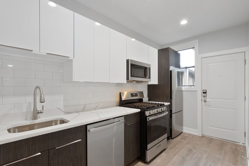 —Two Toned Kitchen Cabinets —Quartz Countertops with Deep Undermount Sink —Stainless Steel Appliances including Dishwasher —White Exposed Brick Accent Wall —Designer Plank Flooring —Gas Range —Expansive Closet Space with Installed Organizers —Fully Renovated Bath with Glass Shower Stall —Lockly Unit Locks —Heat Included! —Ceiling Fans —Pets Welcome! (No Pet Rent)