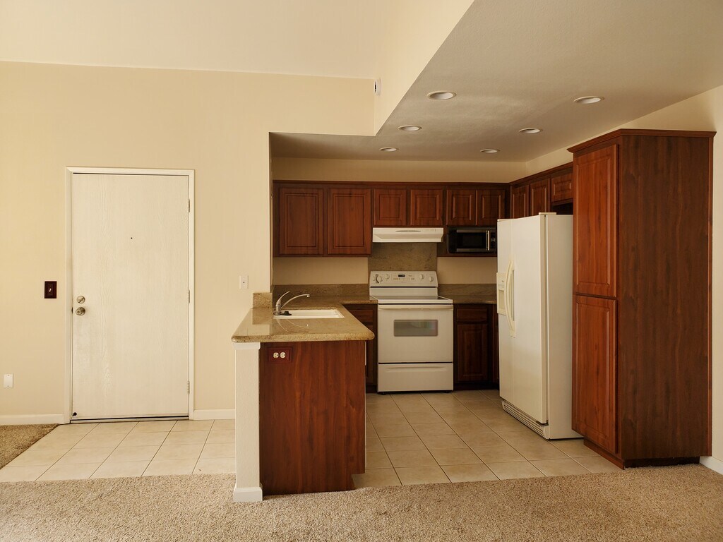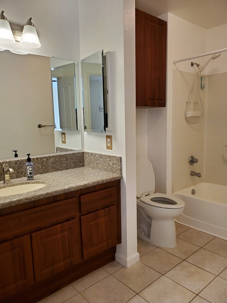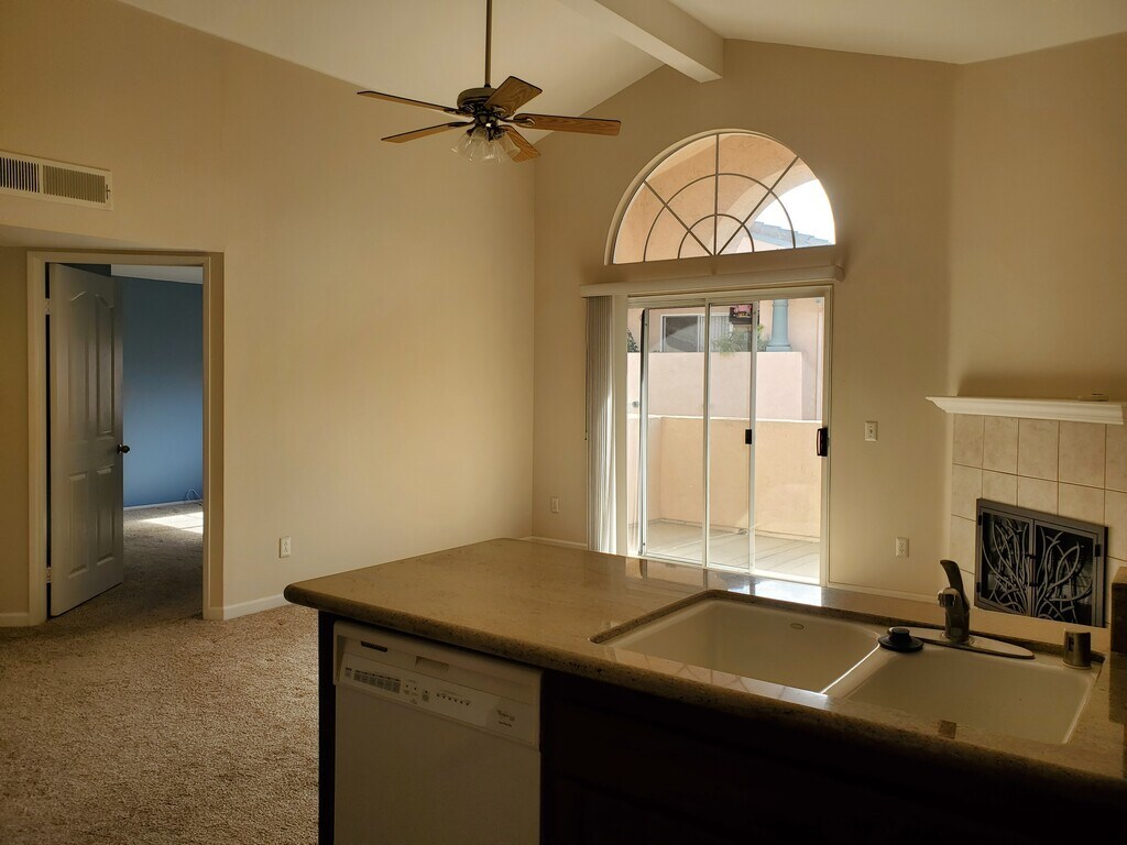 Available January 10. Upgraded large 1 br/1 bath condominium in a quiet and well kept complex. This is a bright and airy second floor unit with vaulted ceilings. The complex is located in upscale area with resort like amenities: pool/spa, clubhouse, and lighted tennis courts. - Central heating and AC - Washer and dryer in unit - Granite countertops and custom design closets - 1 assigned parking space and plenty of guest and street parking - Close to shopping, fitness, and restaurants - Near Rancho Bernardo Tech Center and hiking trails