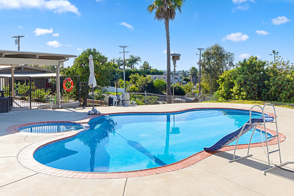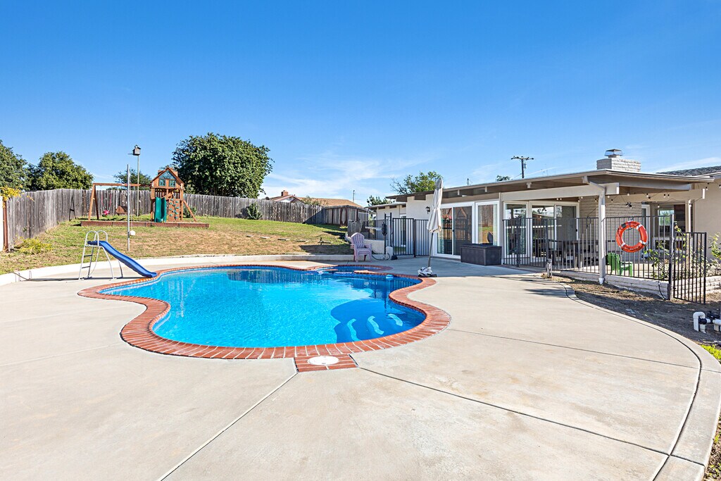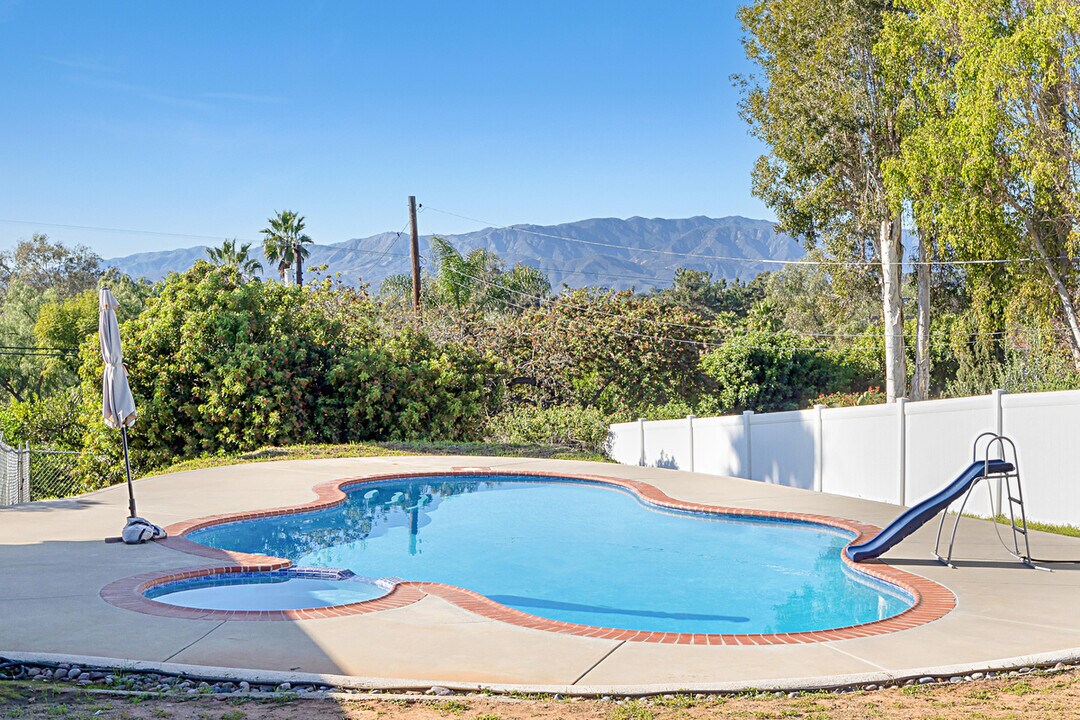 Welcome to this spacious and inviting 3-bedroom, 2-bath home in Fallbrook, offering the perfect blend of comfort, outdoor living, and cost saving energy efficiency with solar panels and a built in EV charger. Situated on a generous 1 acre lot, this home is ideal for those who enjoy gardening, space, privacy, and a relaxed outdoor Southern California lifestyle. The interior features a spacious floor plan with stunning exposed beams, new luxury vinyl flooring, upgraded kitchen and baths and ample living space for families or remote work. Step outside to your private backyard oasis, complete with a sparkling pool and spa, perfect for entertaining or unwinding year-round. For added fun and functionality, the property includes a playground area, chicken coop and mature orange, lemon, lime, peach, tangerine and avocado trees. Conveniently located just a couple of minutes from downtown Fallbrook with easy access to local schools, shopping, dining and local wineries. Don't miss the opportunity to enjoy this one-of-a-kind rental where space and convenience come together!
