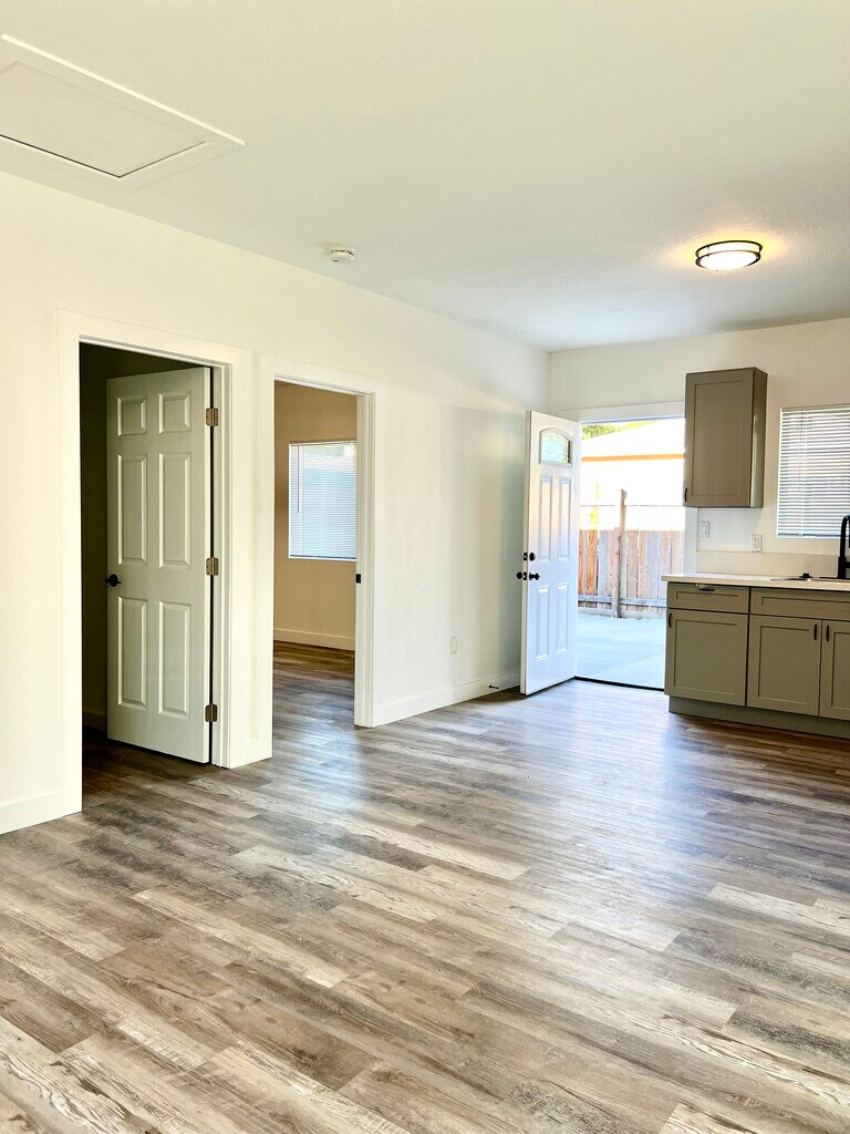 Single story, 2bedroom 2 bath , build on 2024. Has a private side yard that you can park up to two cars, and the laundry in the unit.