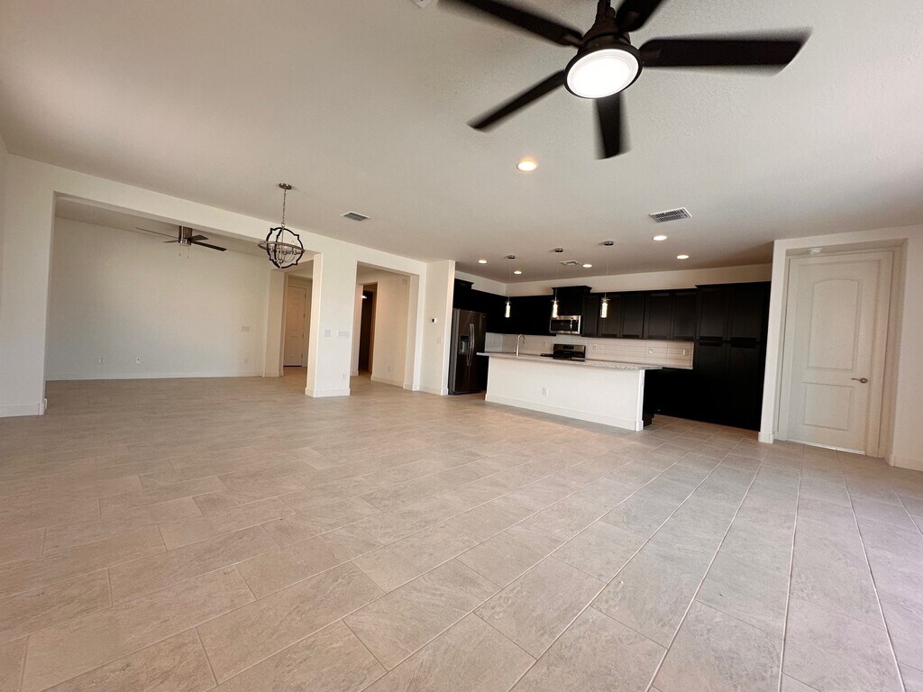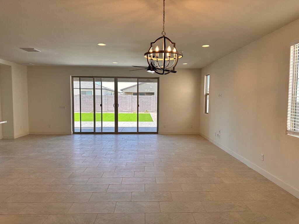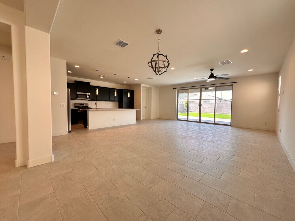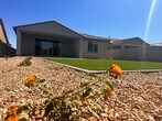 One year old home with impressive open floorplan features a Courtyard entrance with gate with a N/S exposure, 50 x 50 oversized backyard. The home includes 4 rooms + den and includes an open kitchen with expresso shaker cabinets, extended island, granite kitchen countertops, tile backsplash, and all new SS appliances with gas range and new washer and dryer. Flooring includes 12 x 24 tiles extended in all the right places and carpeted flooring for bedrooms. Super shower at owners bath, 8' tall doors, center pull slider and large covered patio! Prime location- close to Loop 303 and the new Prasada shops and restaurants. Pets are negotiable, pets will incur monthly pet rental fee. Utilities are not included.