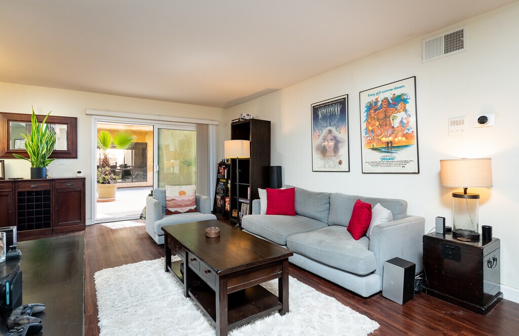 This spacious 1 bedroom/ 1 bath condo at the desirable Casa Palmero is situated in the middle of a beautiful California Palm Tree lined street. The condo features an updated kitchen with quartz counters and stainless steel appliances. Hardwood style floors throughout, no carpet. There is a lovely sitting area right outside the living room so you can bring the outdoors in. You'll also enjoy central heat and A/C and 2 car parking in the garage. Yes parking for 2 cars! Water and Trash included. Tenant pays for electric/cable/internet. Laundry on site. Fabulous location with easy access to Runyon Canyon, major freeways, fine dining and shopping. Available in November.