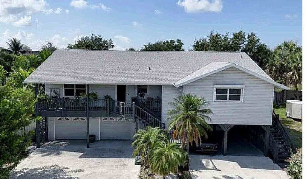 Very nice updated duplex on second floor. Large two bedroom with den. Walk in closets. Two full bathrooms. Double garage. Large driveway. Large fenced yard. Large balcony. A pet is OK with approval. Laminate flooring. Vaulted ceiling. Granite countertops. Electric fireplace. Property is not furnished but there are 2 wall mounted TV's. Lease terms are negotiable. Location is not on Fort Myers Beach. Just off the island. Avoid the traffic! Close to Ft Myers Beach, Sanibel, and easy access to downtown Ft Myers and airport. Utilities are included the first month. This property is for sale. Your rental agreement will not be affected in the event the property sells before the end of your rental agreement. It is listed on another site (I cannot print the site name) where you may see more photos. Please don't hesitate to contact me with any questions.