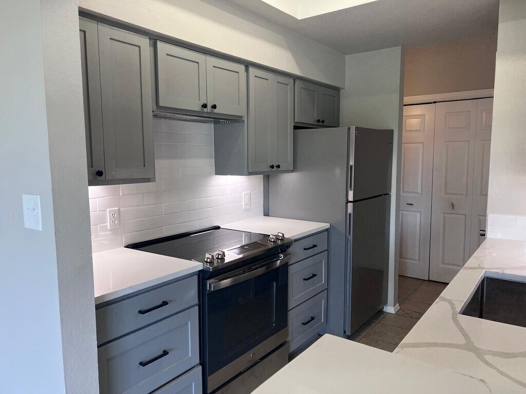 Top-Floor Arlington Condo | Greenbelt Views & Modern Upgrades Enjoy quiet, top-floor living in this 2BR/1BA condo backing to a serene greenbelt. Large floor-to-ceiling windows ensure the home is bathed in natural light, highlighting a stylish open-concept renovation. Interior Upgrades: Chef’s Kitchen: Fully equipped with modern stainless steel appliances, custom cabinetry, and premium countertops. Renovated Bath: Features an updated double vanity, new cabinets, and an oversized walk-in double shower. Private Outdoor Space: Large wrap-around balcony with sliding door access and tranquil, secluded views. Prime Location: Entertainment District: Minutes from AT&T Stadium, Globe Life Field, Texas Live!, and Six Flags. Easy Access: Quick connectivity to Hwy 360 and I-30 for a seamless DFW commute. Community Perks: Gated entry, on-site fitness center, and a sparkling swimming pool. Practical Perks included in rent: Utilities Included: Rent covers water, trash, and sewer. Assigned Parking: Two covered, reserved spots included (#51 and #51b). This unit offers a rare mix of modern finishes and a peaceful, private atmosphere. Schedule your tour today!