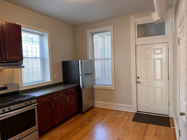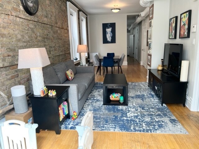 Awesome 2 bedroom plus office that was rehabbed let year! Stained glass transoms, exposed brick, high ceilings, dark cherry kitchen with stainless steel appliances including a dishwasher! Central air and heat, hardwood floors throughout, coin/app operated laundry. walk to Jewel Osco, Nori Sushi, Red Mango, Damen blue line (0.4mi). Beach/Wood. **6min walk to the Damen Blue Line station** -Available June 1st -1 months security deposit -No dog -2 cats max -$150 move in fee for one cat, and $250 move in fee for two cats -tenants pay gas and electric **square footage is roughly estimated and not guaranteed to be accurate**