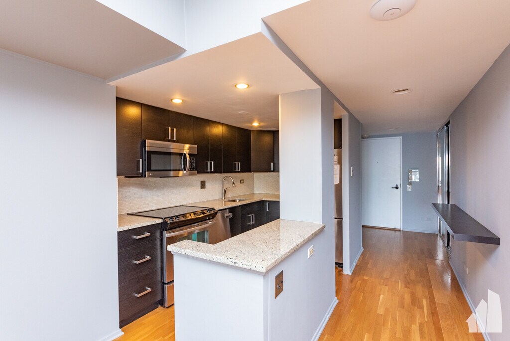 Beautifully remodeled 1 bedroom condo available NOW. This condo features north-facing views of Lake Michigan, hardwood floors throughout, a newly updated kitchen with stainless steel appliances and granite counters, and an office nook. Location is everything here - the building is just steps away from everything Michigan Avenue has to offer! Building features a pool, an exercise room, door-staff, an elevator, and laundry. Water, Heat, Basic Cable, and Internet included. Small pets are welcome for an additional fee. Parking might be available through the building or garage for additional cost.