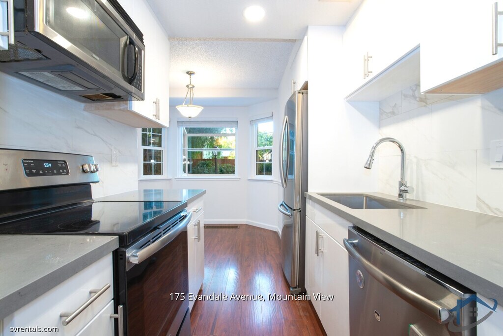 Welcome to this beautifully updated townhome in the heart of Mountain View. Recently remodeled, this bright and inviting home blends timeless design with modern convenience. The second floor and staircase are being updated with brand-new flooring, enhancing the home's fresh, contemporary feel. The main level features a spacious, light-filled living area with large windows and a seamless flow between the living, dining, and kitchen spaces. The kitchen is equipped with modern cabinetry, sleek countertops, and stainless steel appliances -- perfect for everyday living and entertaining. Upstairs, both bedrooms are comfortably sized with ample closet space, and the bathrooms have been thoughtfully remodeled with stylish fixtures and finishes. Enjoy the convenience of garage parking, in-unit laundry, and a peaceful community setting close to everything that makes Mountain View so desirable -- local parks, major tech employers, and the vibrant dining and shopping options along Castro Street. Top-rated schools include Vargas Elementary, Crittenden Middle, and Mountain View High.