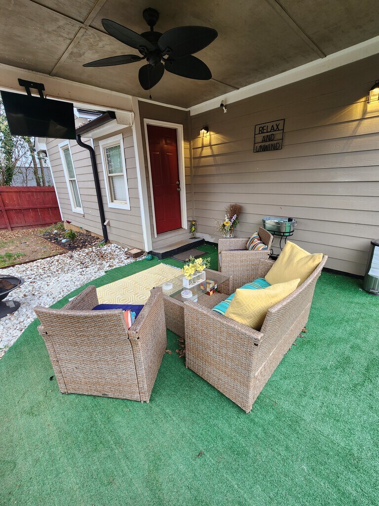 This Spacious Atlanta renovated is your home away from home. Very peaceful neighborhood and only minutes away from downtown Atlanta. It provides front porch view with a back yard patio for relaxation and family and friends. 3 bedroom 2 bath spacious home with front porch swings and lounge seating. A 3 car driveway, full alarm system, and smart lock entry. This lovely home has everything you need to live comfortable with your family and enjoy every minute of downtown amenities. Georgia Aquarium Fairs wheel of the city Hall of fame Atlanta Congress Center Mercedes-Benz Stadium and so much more!