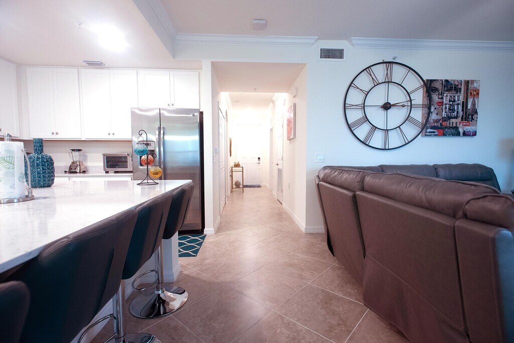 This condo is named "Endless Summer"! What a beautiful new 3rd Floor Condo available for you to book at Lakewood National located in Lakewood Ranch. This one-of-a-kind Arnold Palmer designed 36 Holes Golf Course is a real champion nearly 900-acre enclave set within the 17,500 acre an award-winning master planned community. This property offers 1,232 square feet of living space 2-bedroom & 2-bathroom. I am sure your family and friends will enjoy the spacious living room, and a sleek and stylish kitchen that flows through the dining room perfect for a family meal gathering. The condo offers elegant furniture and wall accent in the living and bedrooms. Everything in the condo is brand new, the condo includes a gorgeous gourmet kitchen with extended quartz countertops features white cabinets, along with casual dining with bay windows overlooking the golf and the lake while preparing your favorite meals. Gorgeous master suite with king size bed with accent walls and two nightstands and a chest with a mounted flat screen TV your privacy. The walk-in closet is very spacious, and it has an additional closet for linens, towels etc... The master Bathroom has a large walk-in shower and quartz countertops with white cabinets. The second bedroom has two twin beds, one nightstand and a chest. It also has an extra mounted TV for your convenience. You will notice when you enter the condo, the entrance table with a mirror and elegant decorations throughout the condo. Everything brand new. Wait to see the lanai, and what a view! you will have plenty of space to enjoy the golf and lake view from the lanai and spend time with your family seating a very comfortable bench and chairs. The condo is equipped with modern electronics, and a variety of options for your favorite TV movie channels. Also, for the guest convenience the condo is equipped with smart locks. The condo also offers a separate storage room perfect to keep your bicycles, golf equipment, or anything you don t want to store inside the condo. You ll enjoy and appreciate the beautiful sunrise from the lanai and This is a perfect place for you and your family to spend your unforgettable vacation. The beautiful Lakewood National amenities is up and running the brand-new amenities will offer you an exceptional resort lifestyle. The community amenities are open state-of-the-art fitness center, lighted clay tennis courts, casual poolside dining, full-service spa, and a beautiful restaurant. You can’t miss the resort style lagoon, beauty salon among many other things. You will find plenty of space to ride your bicycles and walk. Not to mention that Lakewood National is close proximity to the beautiful #1 rated beach in the USA called Siesta Key, Anna Maria Island is approximately 40 minutes, and you can’t forget to visit Longboat Keys. You don’t even need to leave the community to have a delicious meal, you can dine in the beautiful restaurant at the clubhouse or even join your friends at the Tiki bar for casual encountering. This is a perfect place for your vacation time! No pets allowed! *** LONGTERM AVAILABLE ***** Long term rental available. 6 months + 2 days up to 12 months with possibility to extend First Month & Last months rent Plus one-time fees (such as: application fees, HOA fees, pet fees, etc.) Plus Security deposit *** SHORT TERM AVAILABLE ****** Short term rental available. 30 days minimum up to 6 months + 2 days. Off season (April - November) High season (January -March) Mid Season (December) Plus one-time fees Plus refundable damage deposit Plus taxes (February 2026 already rented! Long term availability AFTER February 2026!)