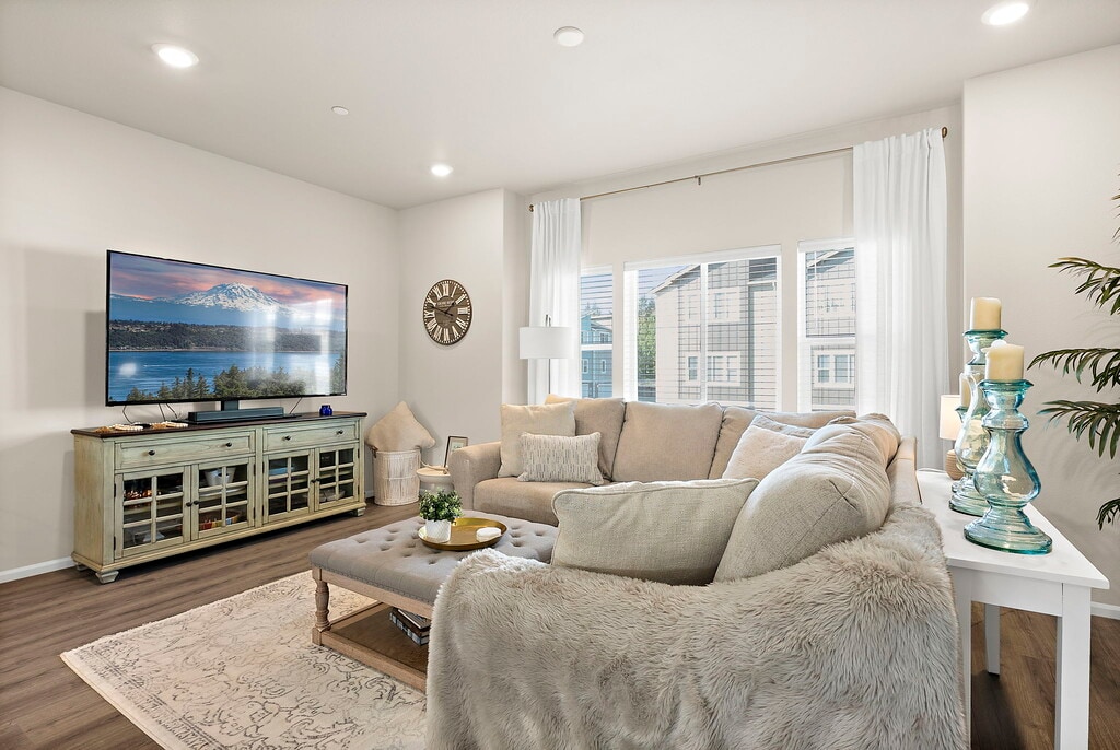 Welcome to this stunning 2-bedroom, 2.5-bath townhome in desirable Sunrise, offering 1,811 sq. ft. of stylish, modern living. This home feels like new with tall ceilings, quartz countertops, and two spacious living areas perfect for work, relaxation, or entertaining. Both bedrooms feature ensuite bathrooms, creating dual primary suites. Enjoy your morning coffee on the private balcony with breathtaking Mount Rainier views. Additional highlights include a dedicated dining area, A/C, 2-car garage, ample driveway parking, and nearby guest parking—a rare find in this community. Smart-home upgrades include a Ring video doorbell and Wi-Fi–enabled garage door opener for added convenience. Located just minutes from Sunrise Village, you’ll enjoy easy access to shopping, dining, and amenities—all within a quiet, well-maintained neighborhood. One month rent deposit required. No smoking, pets negotiable. 1 year lease term preferred, 6 month lease term negotiable. Tenant screening required. Renter pays utilities.