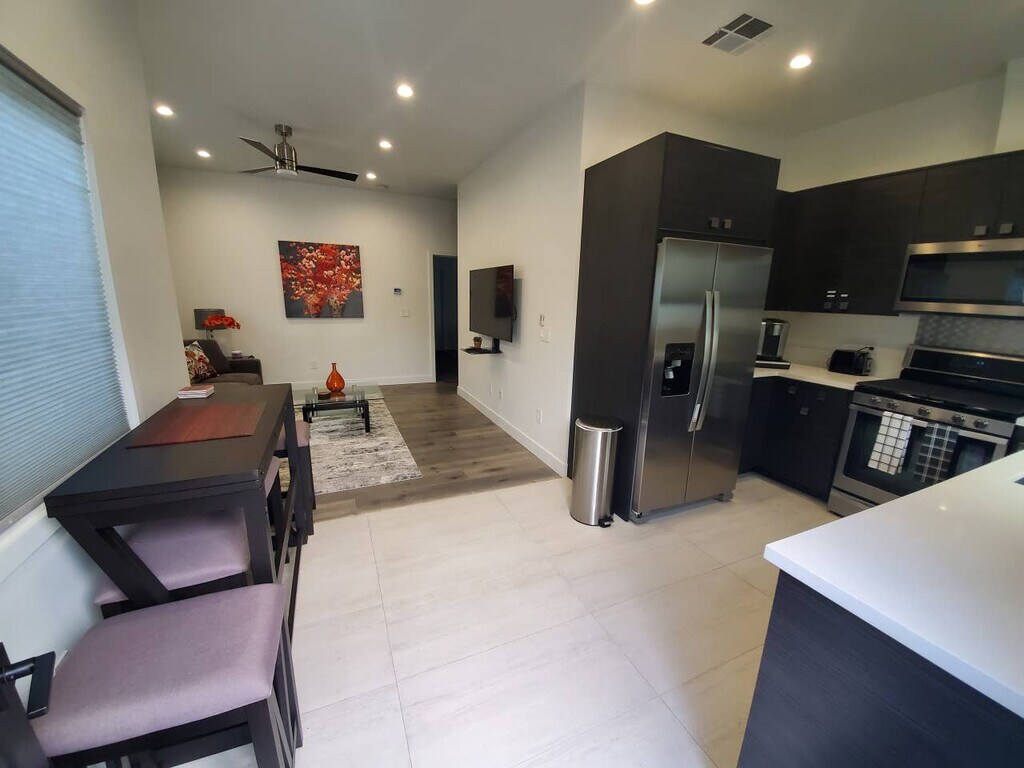 The place is designed for peace & comfort. It has a modern design and a new full-size kitchen with new appliances. Bathroom with rain shower head and bathtub; Comfortable Full-size bed & Queen Pullout Sofa bed, large closet, fresh linens and plush towels, Central Heat & AC, Free Wi-Fi, and In-unit UV/HEPA filter. Please Note: EV Charging unit available at $20, per 4-hour session upon request. Please contact the host to activate the EV service and/or discuss longer-hour sessions.