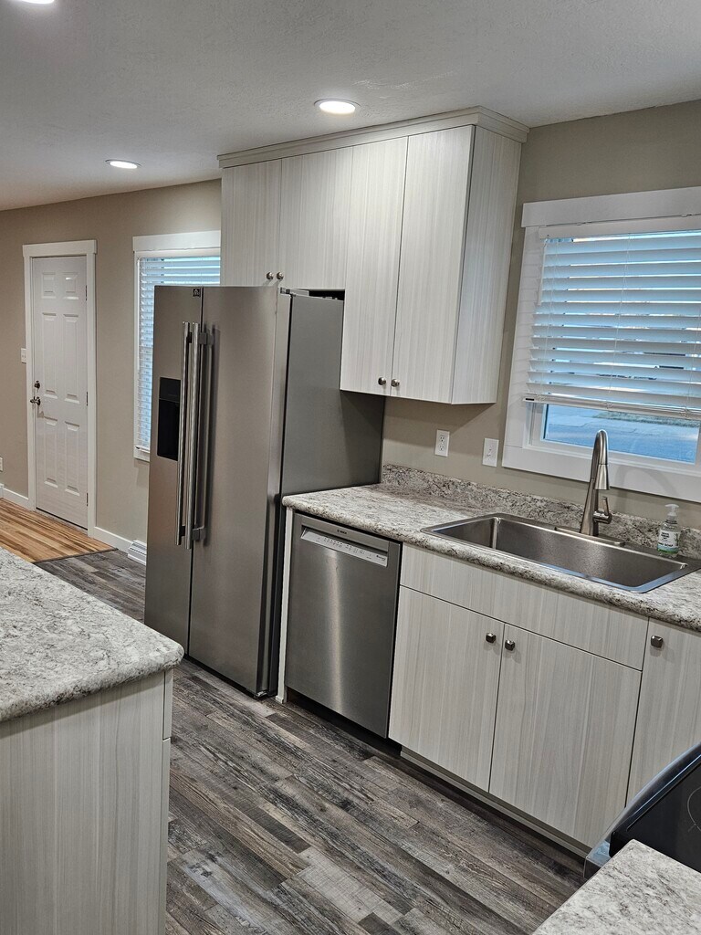 NEWLY RENOVATED HOME in a beautiful and SAFE neighborhood! Location is PERFECT! 3 bedrooms, 2 bath, 1 office, w/Garage including off-street parking vehicles and/or camper parking, and AC (less than 5 minutes to elementary, high school, dining, grocery, gas station) * Home tours are encouraged! Please fill out and return an application PRIOR to contacting me for an appointment. Thank you kindly! - Gorgeous new exterior siding and gutters - Fresh paint in both upper and lower levels - Beautiful NEW stainless-steel appliances (refrigerator, oven/stove, microwave, and Bosch dishwasher) - Brand new facet with large sink, garbage disposal, countertops, cabinets, and flooring in the kitchen - New windows, blinds, and shades in all bedrooms, bathrooms, kitchen, and living room - Beautifully restored hardwood flooring in the upper living room and two bedrooms - Upstairs bathroom is complete with ample cabinet space, vanity, fan, new toilet, and shower/bathtub - New thermostat upper level - Downstairs bathroom equipped with a new standing shower, flooring, vanity/cabinets, lighting, and toilet - Entertainment area, office, and bedroom in the lower level all new carpet throughout - AC: Central Air - Oversized laundry room (extra storage) - New sprinkler system and grass installed in the front lawn and side yard - All duct work recently cleaned - Freshly poured concrete sidewalks - Garage AND Off-Street parking available (recently constructed) RV/Camper's welcome! - Extra refrigerator included in garage - Fully fenced backyard / patio - *** Local Owner/Manager: Unlike large corporate management companies, this home is owned and managed locally. That means faster responses, more flexibility, and a manager who genuinely cares about the property and the people living in it. ----------NON-SMOKING!!! (no exceptions, thank you) ----------