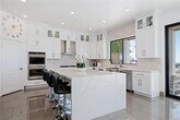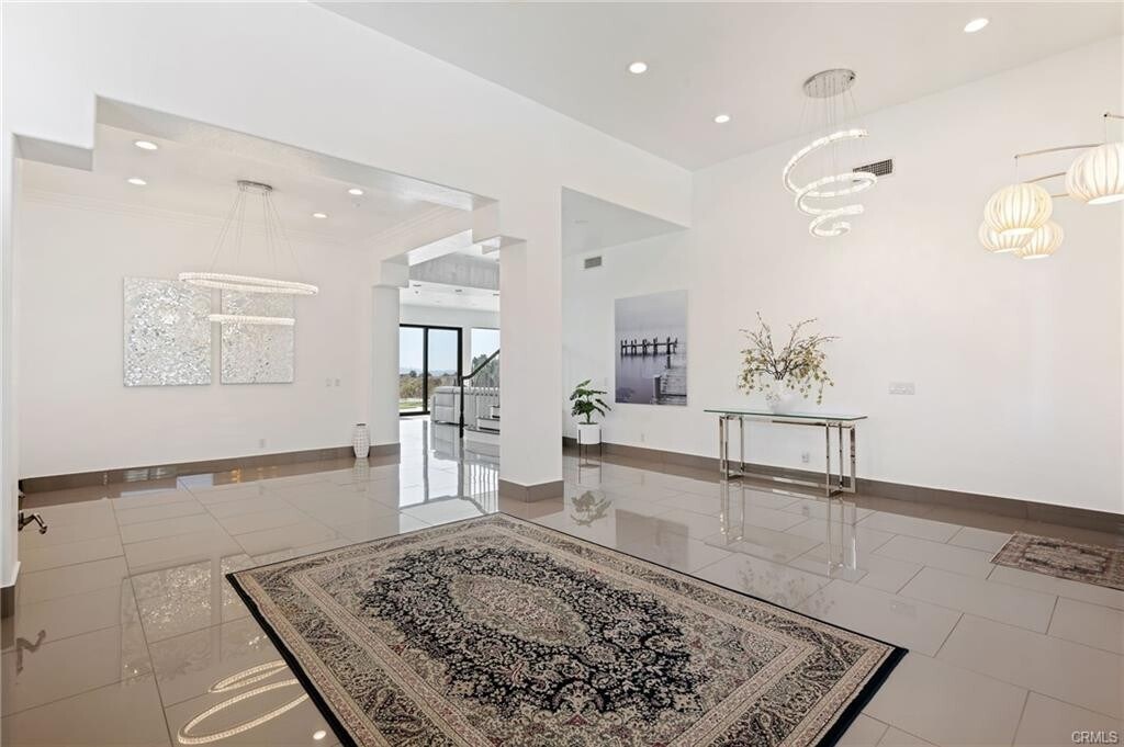 Masterpiece of Modern Luxury and Timeless Elegance! Step into a world of refined sophistication and breathtaking beauty at this exquisitely remodeled estate, perfectly situated to capture panoramic views of the San Fernando Valley and beyond. From the moment you enter through the custom front door, the grand entrance sets the tone for the luxury that awaits. The opulent living room greets you with custom stone flooring and a striking stone fireplace, offering a warm and elegant ambiance. Adjacent, the formal dining room seamlessly connects for effortless entertaining, making every gathering a special occasion. At the heart of the home lies a true chef’s kitchen – a culinary dream outfitted with top-of-the-line stainless steel appliances, double ovens, a built-in microwave, and quartz countertops with a waterfall edge. The oversized island is ideal for casual dining or hosting, while a walk-in pantry and window showcasing mountain and city light views complete the space. The spacious family room features soaring ceilings, recessed lighting, and a custom stone accent wall with a built-in fireplace. A sleek custom slider opens to your private backyard oasis, blurring the line between indoor and outdoor living. On the main level, a full bathroom with a custom shower adds both convenience and luxury. Ascend the custom wood staircase, accented by a stunning marble wall, to discover the primary suite – a true sanctuary. Enjoy your own private balcony with sweeping, floor-to-ceiling views of the valley and city below. The spa-inspired en-suite bathroom has been fully reimagined with a soaking tub, luxurious stone finishes, and a serene atmosphere perfect for unwinding. The upper level also offers an expansive loft with uninterrupted panoramic views, ideal for a media space, home office, or additional lounge. A downstairs indoor laundry room and energy-efficient solar panels add practical comfort to the home’s abundant style. Show-stopping backyard is an entertainer’s dream. Dive into the custom infinity pool and spa, gather around the fire pit, or prepare a meal in the custom outdoor kitchen. Multiple sitting areas, additional fire features, and lush landscaping complete this ultimate resort-style retreat. This home is a private escape where luxury, design, and natural beauty converge. Experience the pinnacle of Southern California living in this one-of-a-kind estate that delivers elegance, comfort, and unmatched views in every direction.