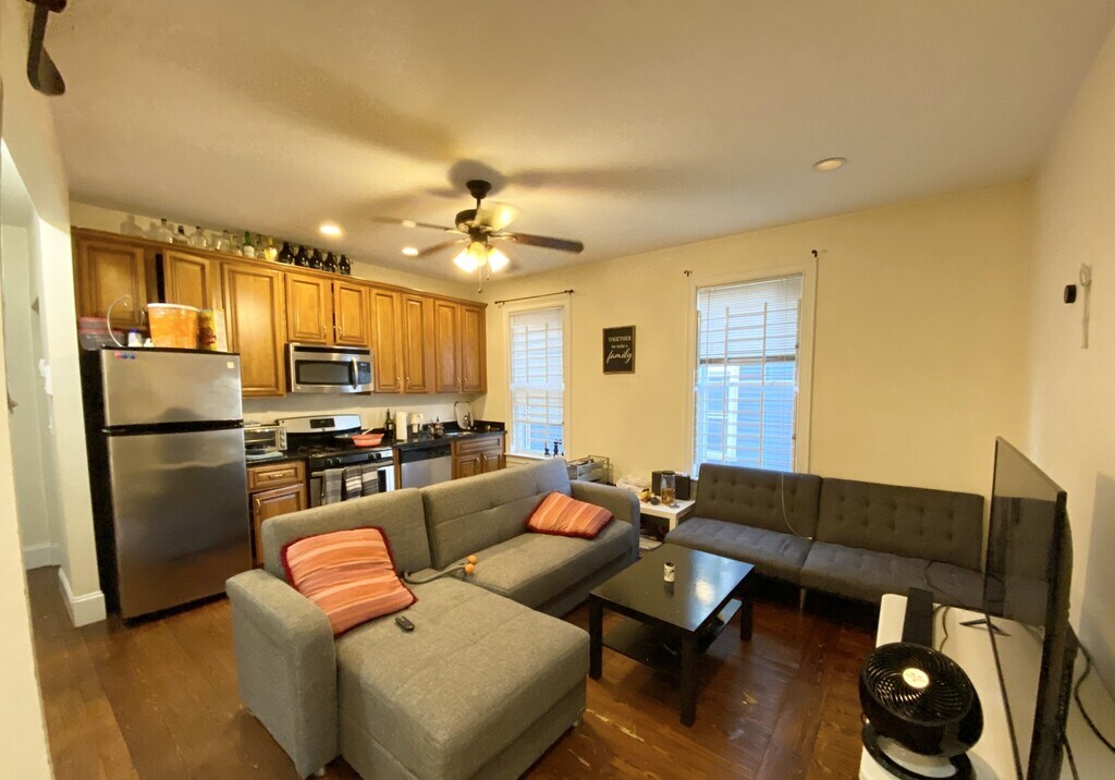 This apartment is located on lovely Hillside Street in Mission Hill. Boasts great living room space, 4 spacious bedrooms, and 2 full bathrooms. Added bonus of having washer/dryer in the unit so you don't have to leave your house! Apartment was renovated a few years ago and comes with modern finishes, central air, and hardwood floors throghout. Kitchen-living room is an open concept and bedrooms are equal in size with good closet space. This unit comes with a private deck space.