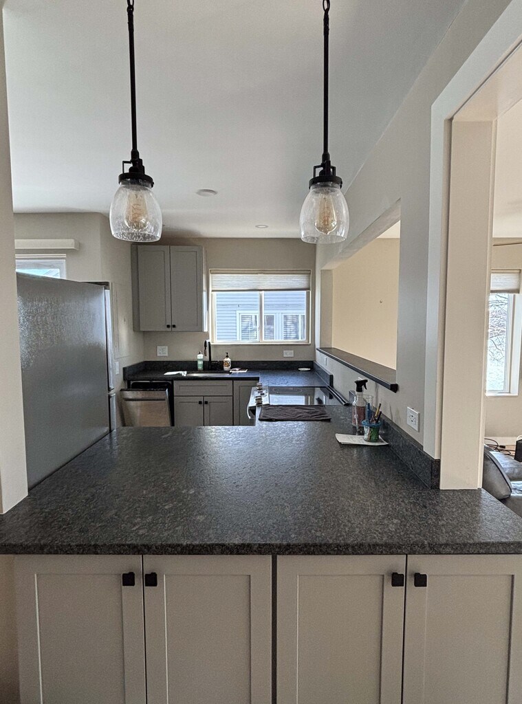 Newly renovated 2 bedroom, 1 bath apartment at Harbor Place Condominium Association in Knightville. Updates include: new appliances and fixtures, newly configured kitchen, granite countertops, wet bar with mini fridge, custom cabinets, tile, blinds, and hardwood floors. The entry is on the first floor, the unit is situated on the 2nd and 3rd floors. Enjoy water views from the private balcony, kitchen, living room, and one of the two bedrooms. Common land area includes mini peninsula on the water with picnic tables and seating. This apartment is conveniently located and within easy walking distance to South Portland's amenities, green belt, restaurants, breweries, parks, and cafes. Willard beach, downtown Portland and SMCC are less than a 10 minute drive away. Walking to downtown Portland is accessible and takes under 30 minutes. Available for 12 month lease. Includes water, sewer, trash removal, grounds care and snow removal. Unfurnished with exception of wall mounted flat screen TV in living room. Off street parking. No pets. No smoking. First and last month's rent and security deposit due at lease signing.