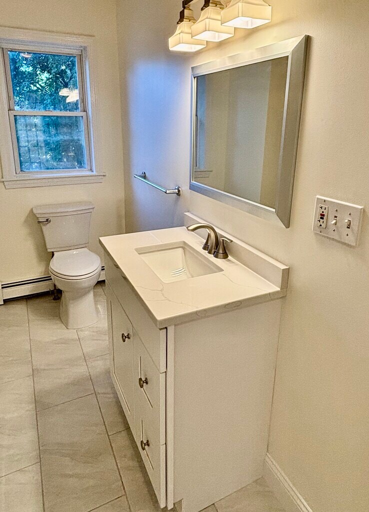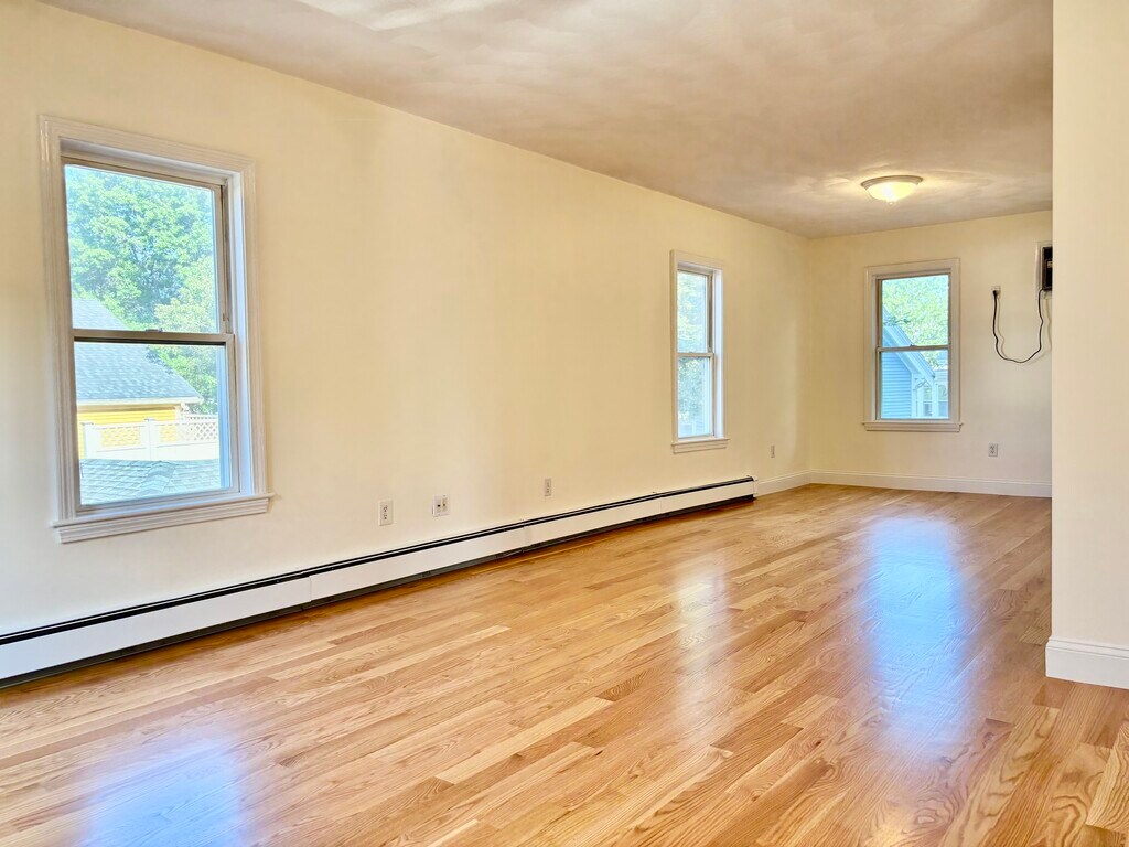 Discover this beautifully renovated 4-bedroom, 1- full bathroom apartment, perfectly located in the heart of Reading, MA Unbeatable Location: Quiet street and walking distance to downtown Reading parks, coffee shops, restaurants, and boutiques. Easy access to Rt 93, Rt 95, and Rt 1. A quick walk to local bus routes. 10-minute walk to Reading Depot commuter rail for a fast Boston commute. City-like living within a town. The best of both worlds, plus a great school system. Brand-new modern kitchen featuring quartz countertops, beautiful tile backsplash and flooring, and modern stainless-steel appliances Fully updated bathroom with beautiful tile throughout Open Concept Living and Dining room with abundant natural light Four bedrooms with plenty natural light. The primary bedroom with a walk-in closet In-unit brand-new stainless-steel laundry Brand-new hardwood flooring for the whole unit and staircases throughout with a sky light Freshly painted, well-lit, and thoughtfully designed for the whole unit Separate door entrance Private driveway for 4 cars exclusively used for the unit (in addition to plenty of street parking) Large walk out basement for storage with natural light and large sized doorway Water, sewer, and trash disposal included Tenant to pay electric, gas, internet/cable, plus snow removal for the unit's private driveway use No broker fee or realtor fees Rental Details: Rent: $3,300/month Lease Term: 1 year Monthly income: 2.5 x rent Background/reference screening Credit score of 680 No smoking, no pets First, last, and half month security deposit