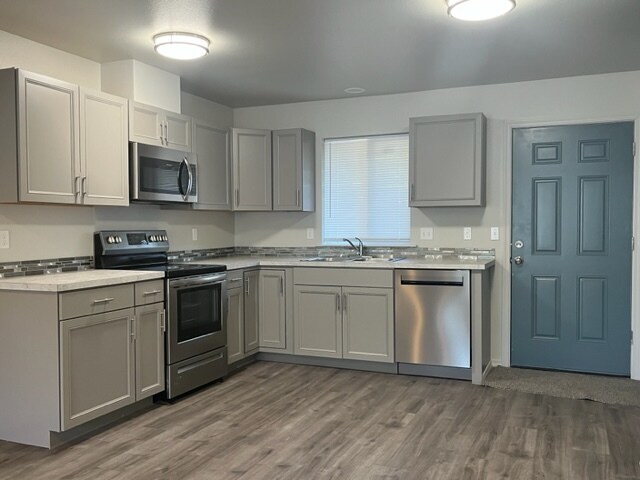 This newly built 2 bedroom, 2 1/2 bath two story triplex is ready to move into. The downstairs features a spacious living room that opens into the kitchen with lots of counter space, tile accents, stainless steel appliances, multiple cabinets, a pantry closet, and a 1/2 bath. Both bedrooms are upstairs with the guest bedroom in the front of the unit offering plenty of separation from the master suite located at the rear of the unit. In between you will find a full guest bath and a laundry closet with a brand new stack washer and dryer. Extra storage space is located just outside the kitchen door. Wenatchee School District Non-Smoking Property No Pets Allowed 1 Year Lease Water, sewer, and garbage included with $105 reimbursement Tenant pays for electricity **Renters Insurance Required**
