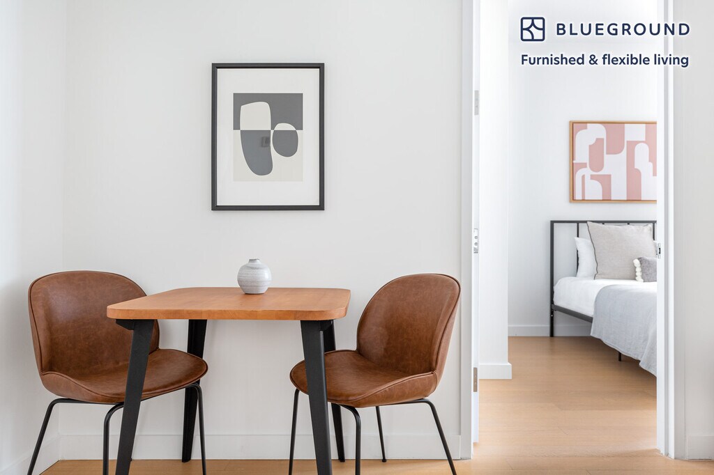 Show up and start living from day one in New York with this lovely one bedroom Blueground apartment. You’ll love coming home to this thoughtfully furnished, beautifully designed, and fully equipped Financial District home with stunning high floor views over the river. (ID #NYC536) The advertised rate of $6,290/month is the lowest available price, based on a 12 month(s) stay with a move-in date of June 1, 2026. Rates vary depending on the duration of stay, season, and other parameters. For exact pricing and additional pricing components, please visit our website and enter your desired move-in and move-out dates. The rate is applicable when billed upfront; it can be higher if billed in multiple payments. Brokers are welcome to reach out. Were you looking for an unfurnished lease? Try Blueground instead and upgrade from unfurnished to furnished living: - Furnished at rates comparable to unfurnished - No setup or furniture costs - save thousands - Move-in ready - save time, just bring your suitcase Designed with you in mind Thoughtfully designed with bespoke finishes, modern furnishings, and a fully equipped kitchen, you’ll enjoy that “I’m home” feeling with this Blueground apartment. Whether you’re lounging in your spacious living room streaming the latest and greatest entertainment on the smart TV or premium wireless speaker, or getting some well-earned rest on the superior quality mattress with luxury linens, you’ll fall in love with everything this Financial District apartment has to offer. This apartment also offers in-apartment laundry. Sleeping arrangements Queen Bed, 63in/160cm Amenities Building amenities unique to this one bedroom apartment include an on-site: - Doorman - Dryer - Elevator - Game room - Swimming pool - Washing machine - Lounge - Pets allowed - Playroom Arrival and ongoing support The entire apartment is yours to enjoy! Throughout your stay, you’ll have access to our Client Experience team through the Blueground App. You can schedule additional cleanings, submit maintenance requests, and view our neighborhood recommendations with just a few taps. We’ll share all details upon confirmation of your stay. Ideally Located This furnished apartment is located in the Financial District, also known as FiDi. Home to Wall Street, One World Trade Center, the South Street Seaport, and Bowling Green it is a constant hub of activity. During the week the sidewalk is always bustling and the restaurants are filled with professionals. The glittering skyscrapers and well-known landmarks make this one of the city’s most recognizable and historic neighborhoods. By subway, Times Square is about 20 minutes away. Other things to note Building amenities may have an extra cost. This Blueground apartment has flexible lease options, allowing you to book it for one month, a year, or more. Pets are welcome, though weight limits and breed restrictions apply and may incur fees. Brokes CYOF. We take great pride in ensuring every photo displayed is shot in our own units with our actual furnishings. That said, we regularly refresh our decor and furniture arrangement, which may differ from what’s pictured. [SI]