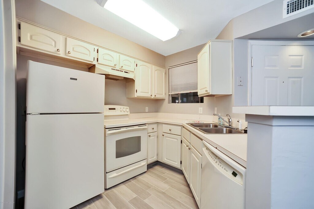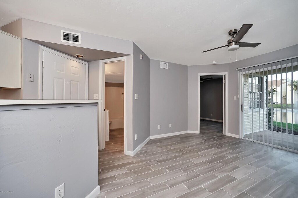 This is a very desirable ground floor, 1 bedroom/1 bathroom, condo located in the lovely Beach Club Luxury Condominium complex. Updated modern wood look tile plank flooring throughout and very well maintained. Brand new stainless steel appliances will be installed this week, kitchen photo will be updated when complete. Complex includes community pool, hot tub, fitness center, laundry center, and recreation center. Enjoy the lake view from your living room and bedroom, large walk in bedroom closet, and ground floor convenience! There is no washer/dryer hook-up in unit, but the community has a laundry center walking distance away. Conveniently located on Eau Gallie by A1A, walking distance to beaches, Starbucks, shopping and dining. Rent includes Cable TV. Minimum 1 year lease. Must earn 2.5x rent and pass background and credit check. Available now.