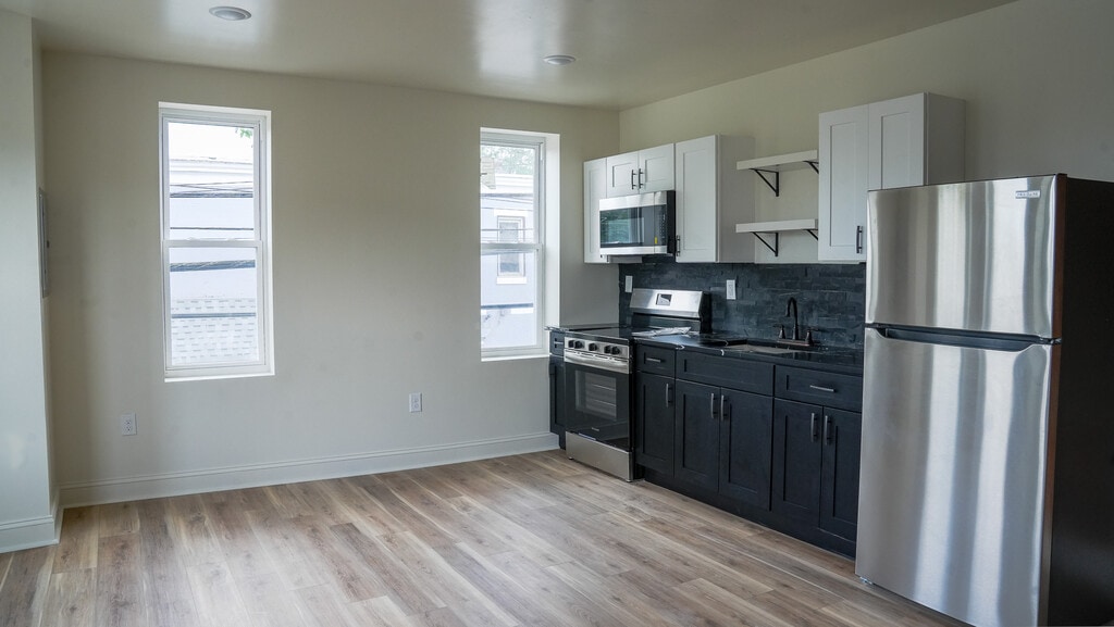 This beautifully renovated one-bedroom apartment features sleek modern finishes, a sparkling new kitchen with updated appliances, and elegant hardwood flooring. The thoughtfully designed living area is ideal for cozy nights in or lively gatherings. Enjoy central air conditioning, an in-unit washer and dryer, a spacious bedroom, and generous closet space—all designed to offer comfort and convenience throughout. Don't miss your chance—schedule a viewing today! The first and last month's rent, plus the security deposit, are due at signing. Tenant pays for the electric utility bill; water service is included in the base rent as an amenity. Renter’s insurance required. No Smoking and No Pets allowed.