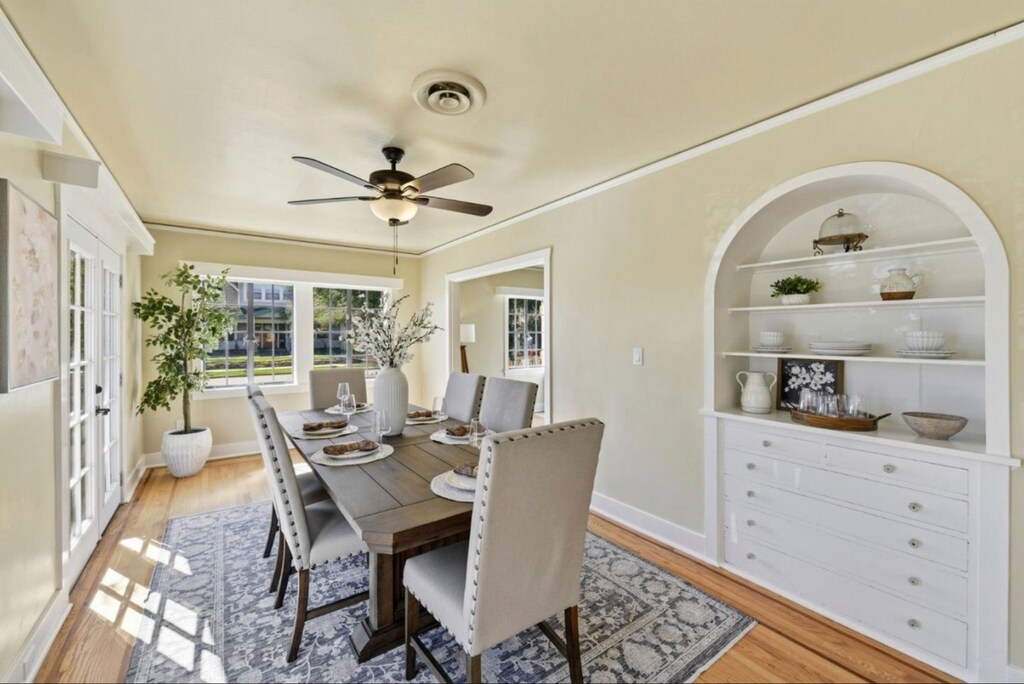 This charming 3-bedroom, 2-bathroom home at 181 College Way perfectly blends classic character with a bright, airy atmosphere. Situated in the heart of Auburn, you are just a short walk away from the vibrant restaurants, shops, and entertainment of both Downtown and Old Town Auburn. Interior Highlights Bright & Inviting: The home features a sun-drenched interior with plenty of large windows that let in an abundance of natural light. Cozy Living Space: A large living room serves as the perfect centerpiece, anchored by a warm gas fireplace and classic hardwood inlaid floors that run throughout. Elegant Dining: A spacious formal dining room connects through double French doors to an inviting deck, creating a seamless flow for entertaining. Large Kitchen: Fully equipped with new appliances and a charming built-in dining area for easy morning coffee or casual meals. Comfort & Convenience Spacious Bedrooms: Two oversized bedrooms and one smaller bedroom/office space offer ample room and continued classic detailing. Bathrooms: One bathroom with a full sized tub on the main floor and an additional bathroom with shower in the basement area. Practical Amenities: Includes ample storage space, convenient washer/dryer hook-ups in basement area, and dedicated off-street parking. This centrally located gem offers the best of Auburn living with a perfect balance of historic charm and modern comfort.