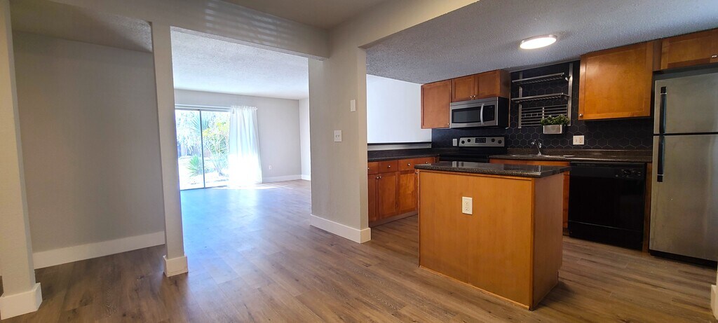 Large ground floor apartment, newly painted, laminated flooring, large living room with complete kitchen, stainless steel appliances, washer/dryer in unit, open porch with access to green areas and close to all amenities. The apartment is located in a very calm and relaxed community with pool, tennis, gym and extended green areas with a creek with easy access to 13th St and 2 miles away from UF Campus and Downtown.