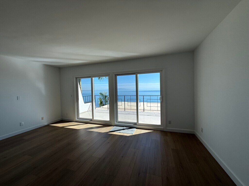 FOR LEASE 18139 COASTLINE DRIVE, APT. #4, 2 BEDROOM – 2 BATH LIBRARY/DEN 645 SF DECK 1600 SF $8,000 UNOBSTRUCTED PANORAMIC OCEAN VIEWS WHITEWATER & QUEEN’S NECKLACE VIEWS PRIVATE ENTRANCE PATIO WITH FOUNTAIN HUGE 43’ x 15‘ (645 SF) DECK STEPS TO SANDY BEACH AND GETTY VILLA NEW STAINLESS STEEL APPLIANCES WASHER/DRYER IN UNIT HARDWOOD FLOORS ALL ELECTRIC AND RADIANT HEAT EACH APARTMENT IS ON ITS OWN FLOOR, NO-COMMON WALLS WITH NEIGHBORS 2 PARKING SPACES IN CARPORT LOTS OF STORAGE AND CLOSET SPACE 10 MINUTES TO SANTA MONICA