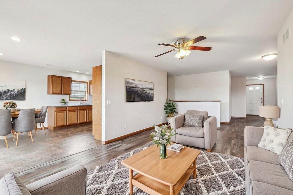This incredible property at 1814 Fjord Pass features 3 bedrooms and 3 bathrooms within a spacious 2,300 square feet. The living room offers ample space for relaxation and entertainment, while the bedrooms provide comfortable accommodations. Each bathroom includes a tub/shower combination for convenience, yes, that includes the basement too! Enjoy 9 ft ceilings providing your guests with that "wow" moment! Additional features include ceiling fans in the bedrooms, and in-unit washer/dryer for added convenience. There is also plenty of storage space with an attached 2 door garage and an additional room in the basement for ease of storage too. The exterior of the property is well-maintained, providing a welcoming atmosphere. This unit is available Dec 6! Capture all Mt. Horeb has to offer. We can't wait to show this space to you!