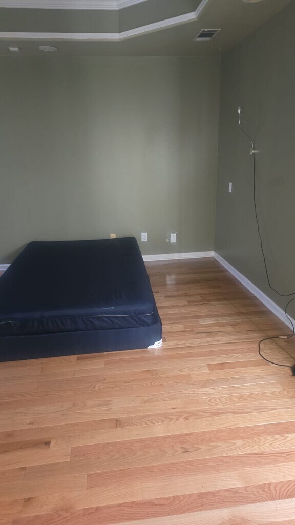 Master bedroom in a four bedroom house for rent. It has separate bathroom. Shared living room and kitchen. No pets. Flexible lease. Includes all utilities. $800 deposit.